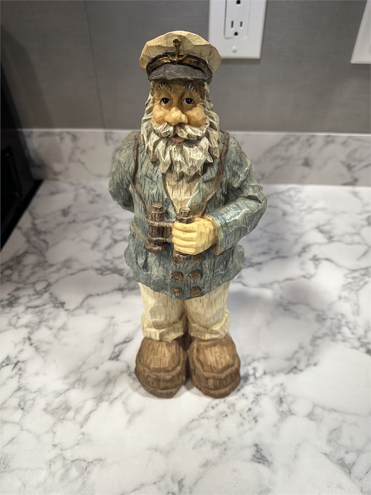 This is a hand-carved wooden sea captain figurine, often referred to as an "Old Salt“