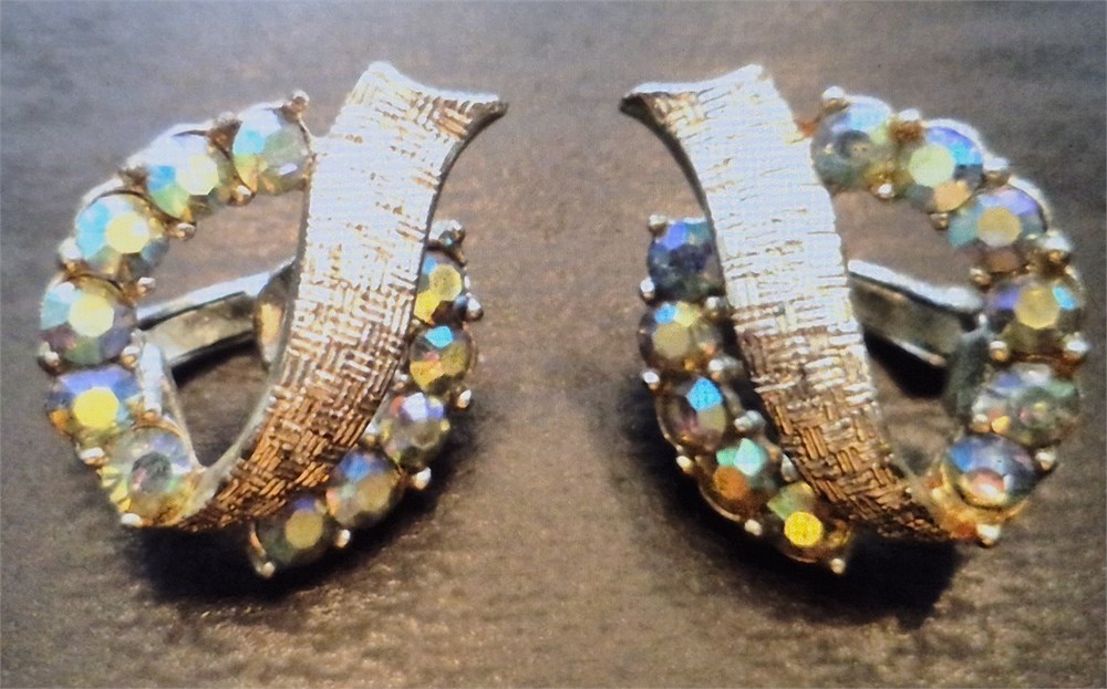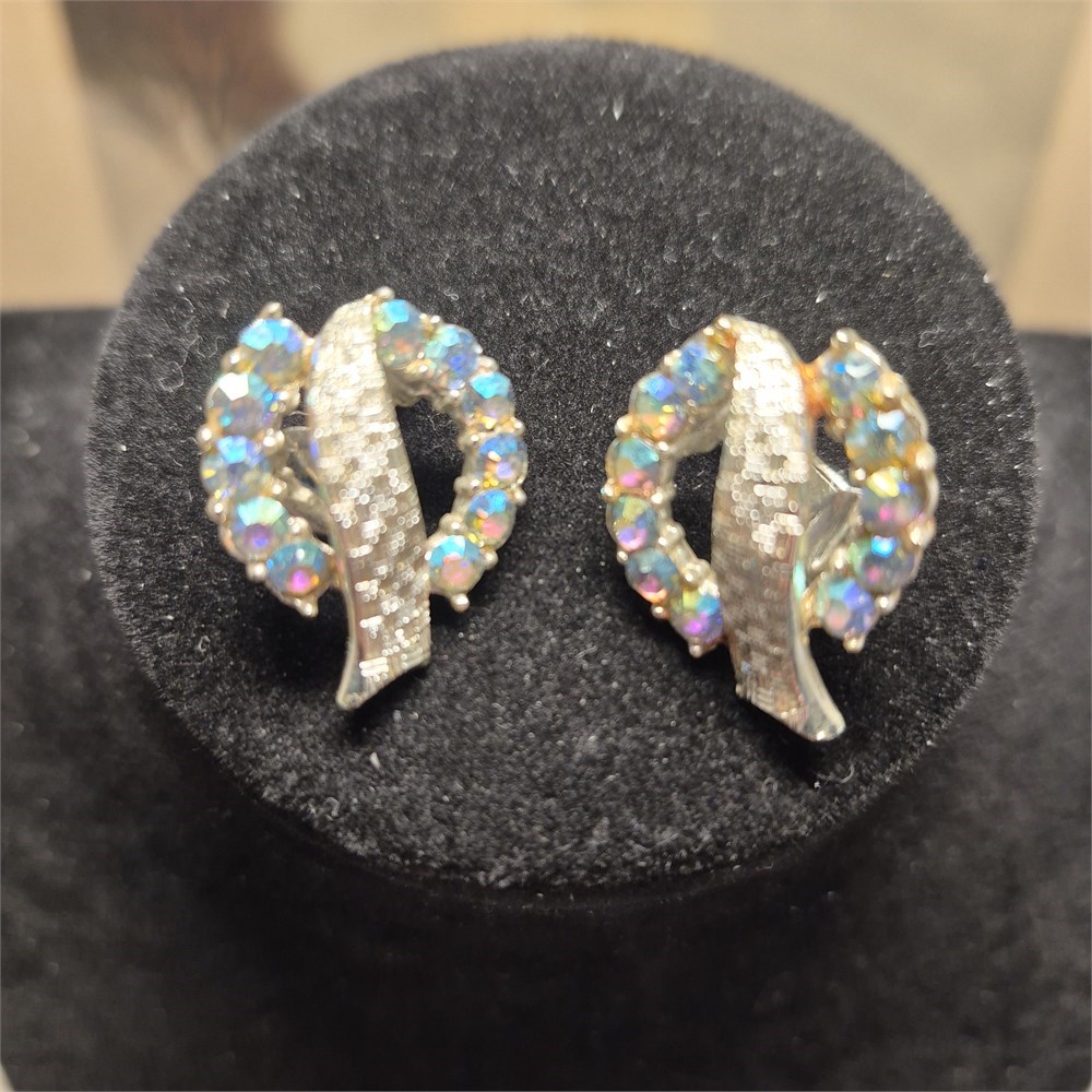 VINTAGE CORO ESTATE SIGNED AB RHINESTONE 1" CLIP EARRINGS!