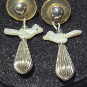 VTG Dyed Stone Natural Necklace Double Strand Beads Silver Tone Chain 20" & Earrings