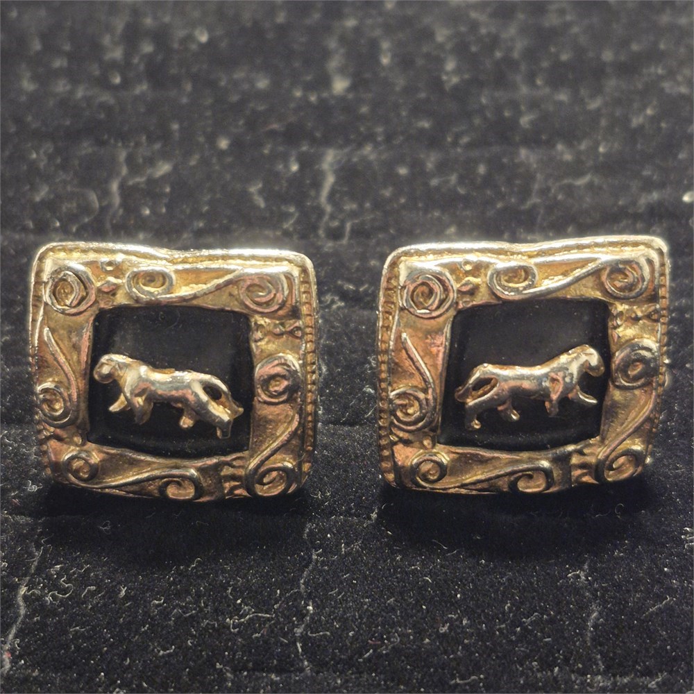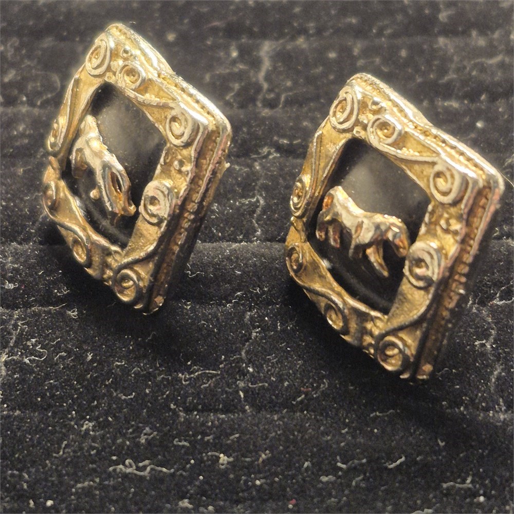 B&K 1" square Earrings ~ ebony and brushed gold clasp backs
