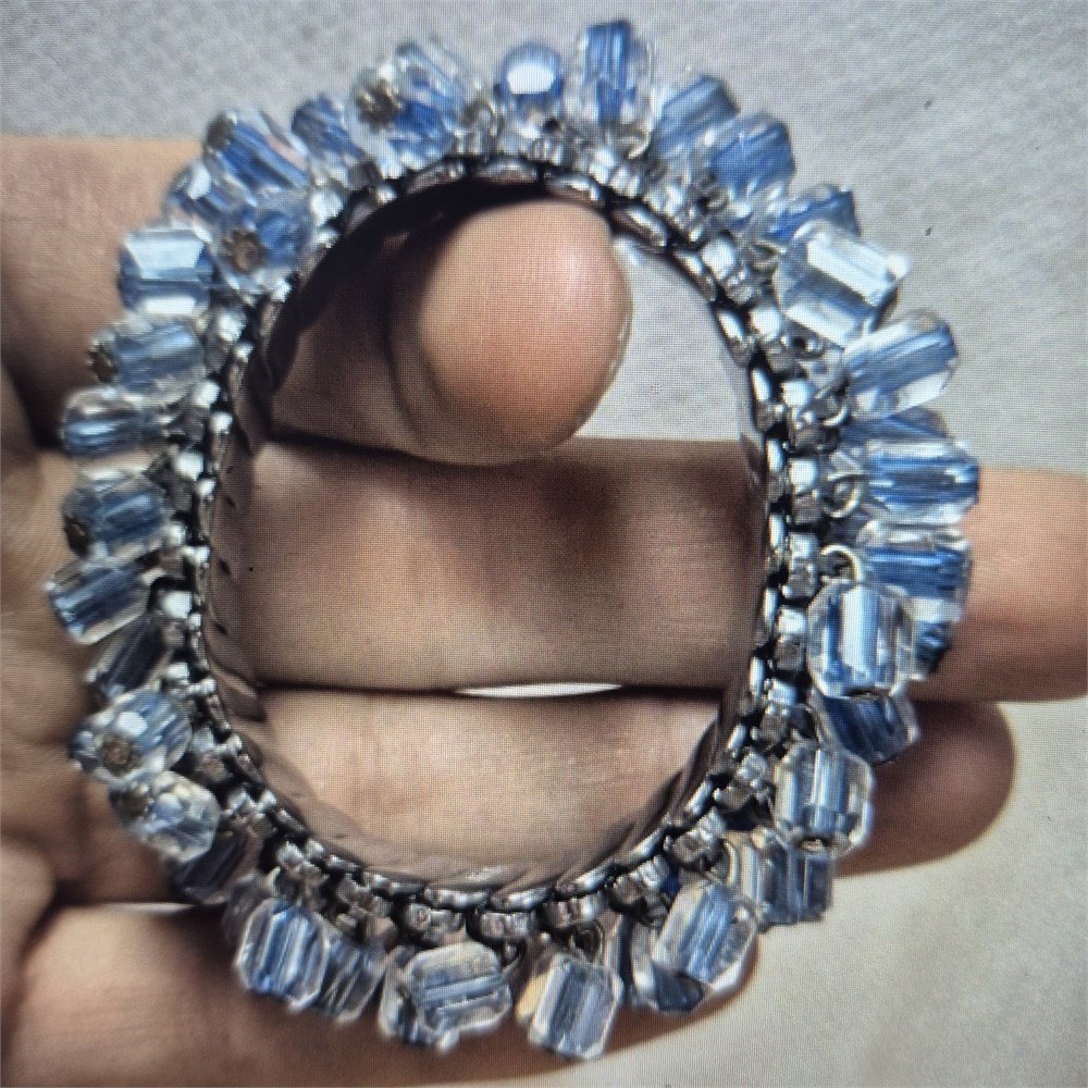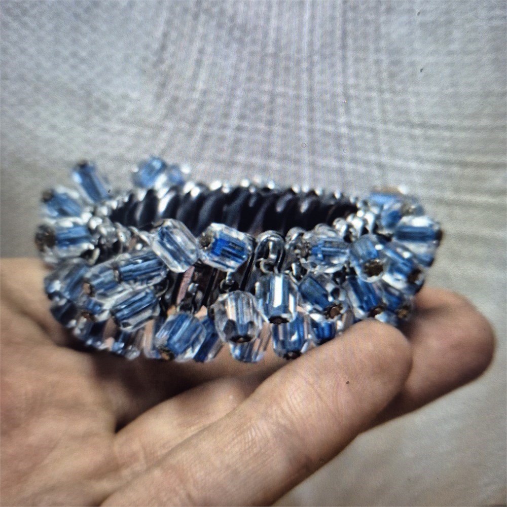 Vintage Cha-Cha Japan Stretchable Bracelet Blue and clear silver tone