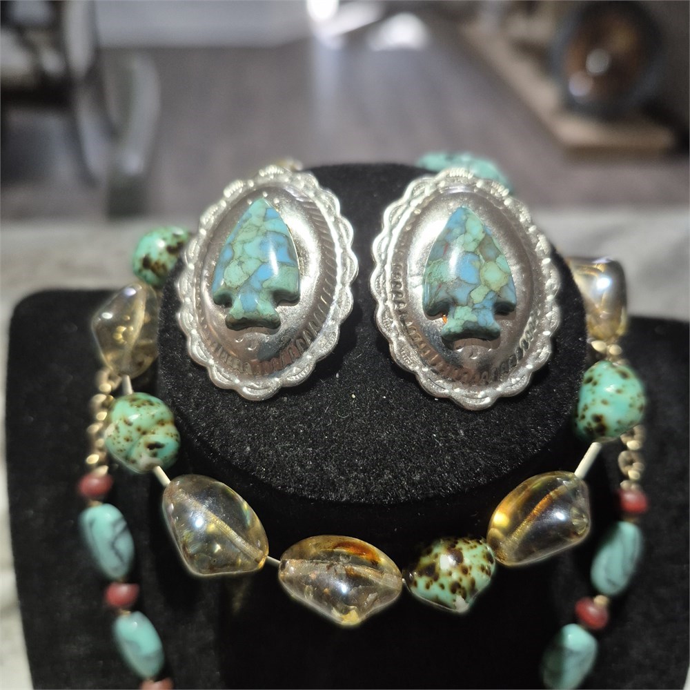 Vintage Turquoise Indian Set ~ Necklace / bracelet / Earrings