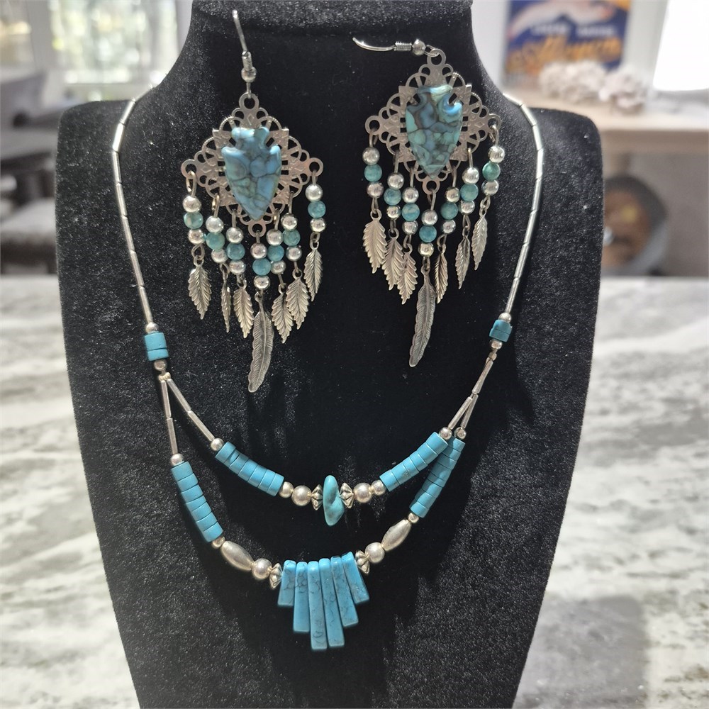 Vintage Liquid Silver Handmade Turquoise Necklace & Earrings