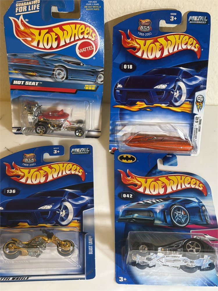 Hot wheels hot seat, 2003 first edition, wild thing, blast lane and 2004 first edition hard nose, Batmobile