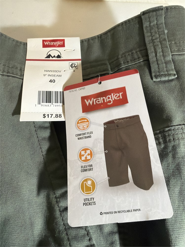 New wrangler shorts still has the tags size 40 classic flex Waistband, flex for comfort and utility pockets