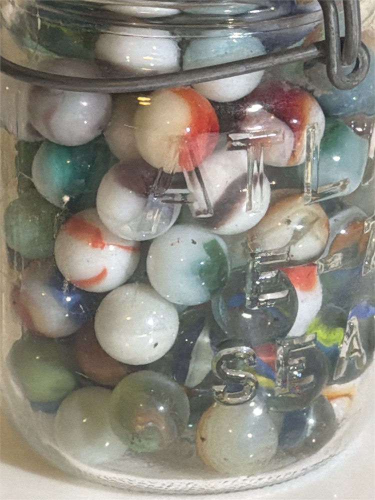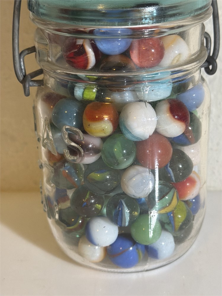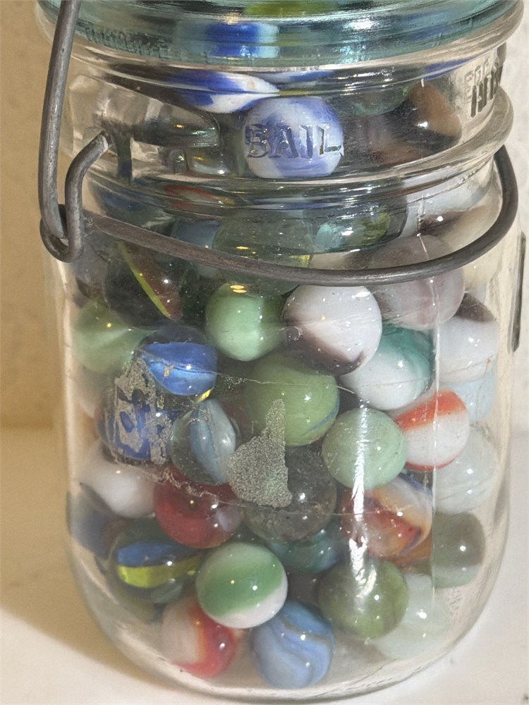 Antique SKO Wide Mouth Queen marbles Pint Mason Jar - (LB)
