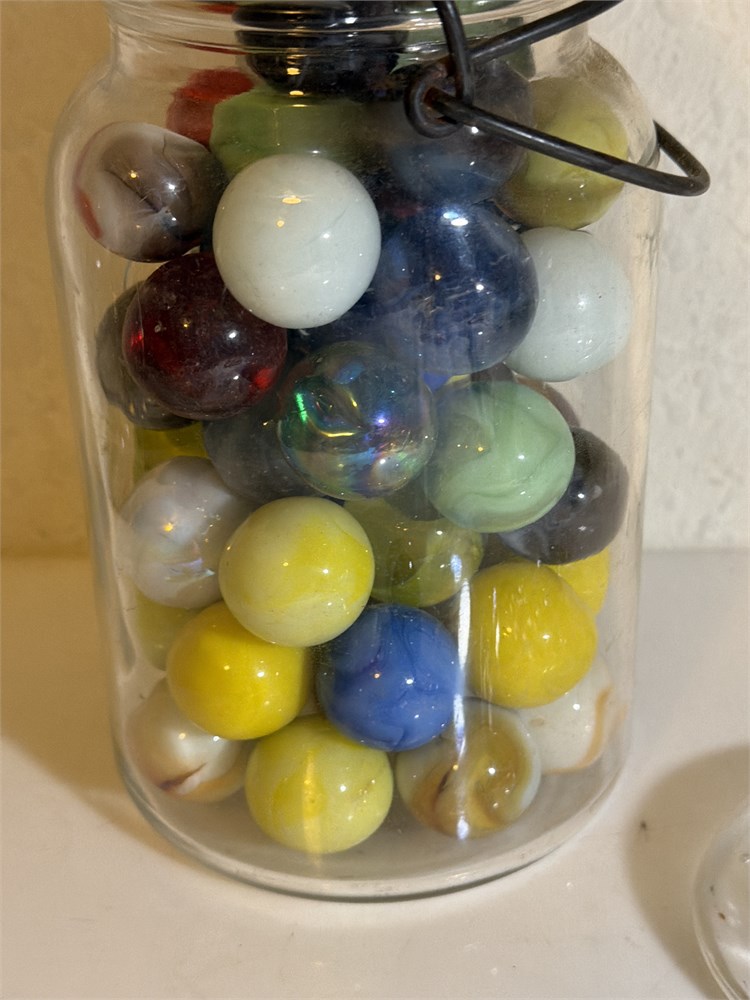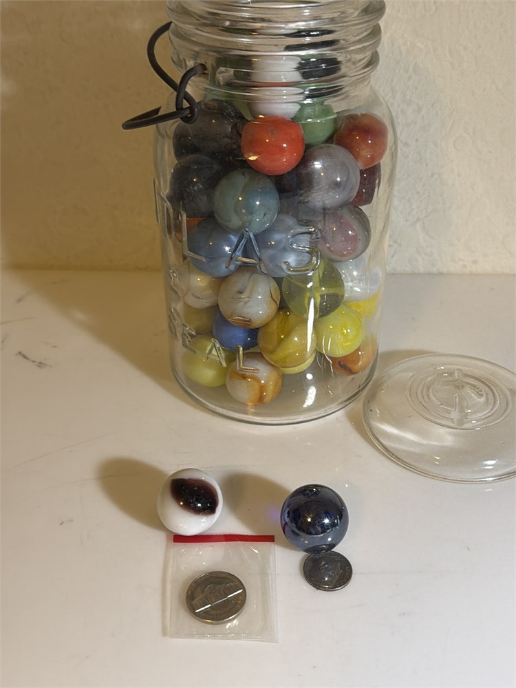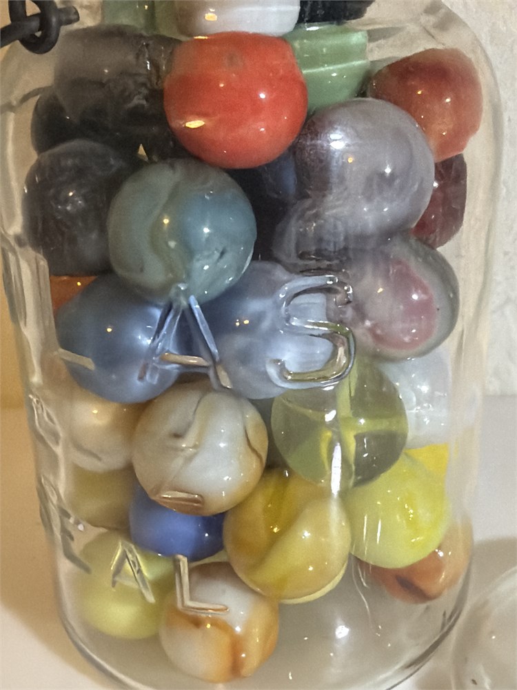 Antique SKO Wide Mouth Queen Marbles-quart 7“ x 4“ assortment of colors