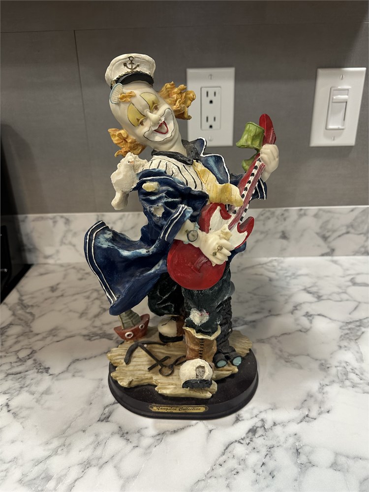 This is a Yang Lin Collection clown figurine playing an electric guitar