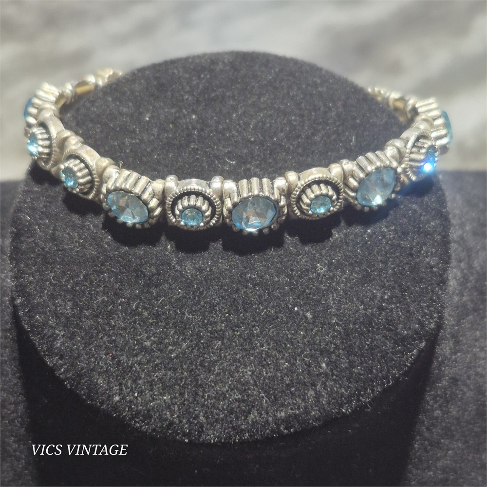 > glass chip stretch silver tone bracelet