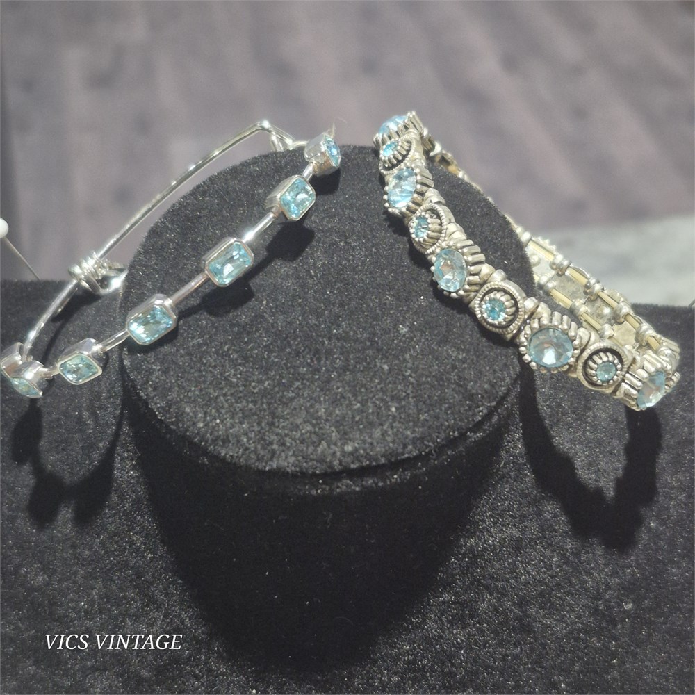 Pair Aquamarine BRACELETS ~ Alex & Me & stretch [VC]