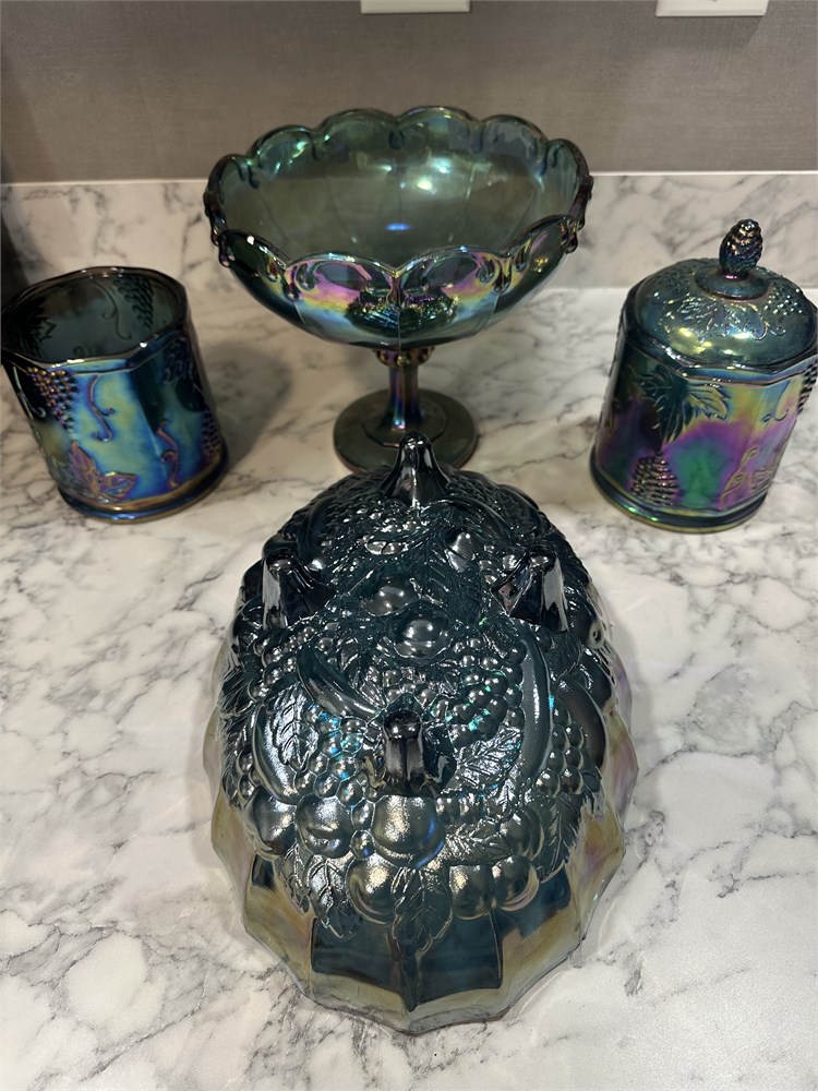 • Manufacturer: Made by the Indiana Glass Company, it features their classic "Harvest Grape" pattern.