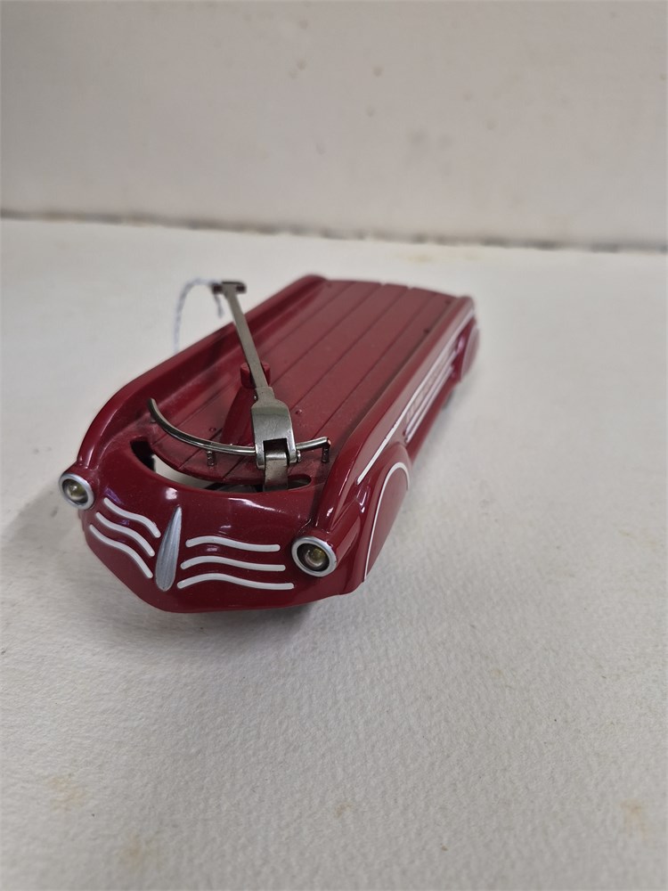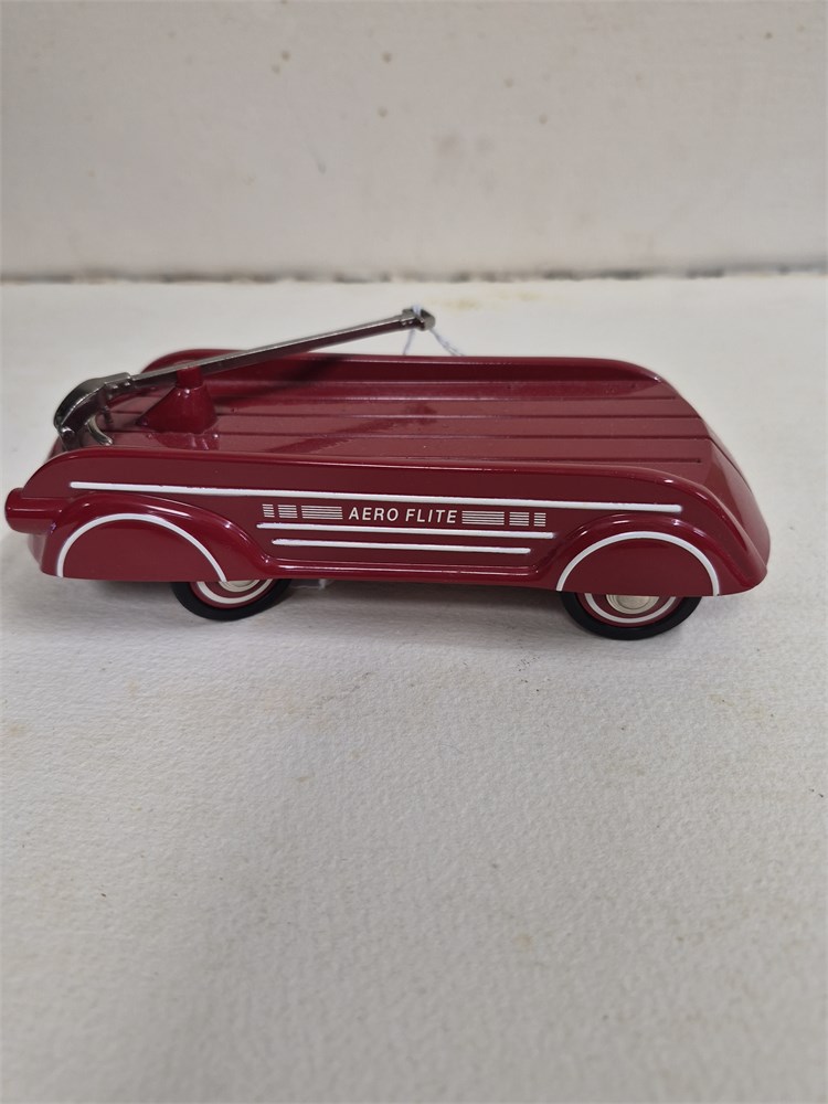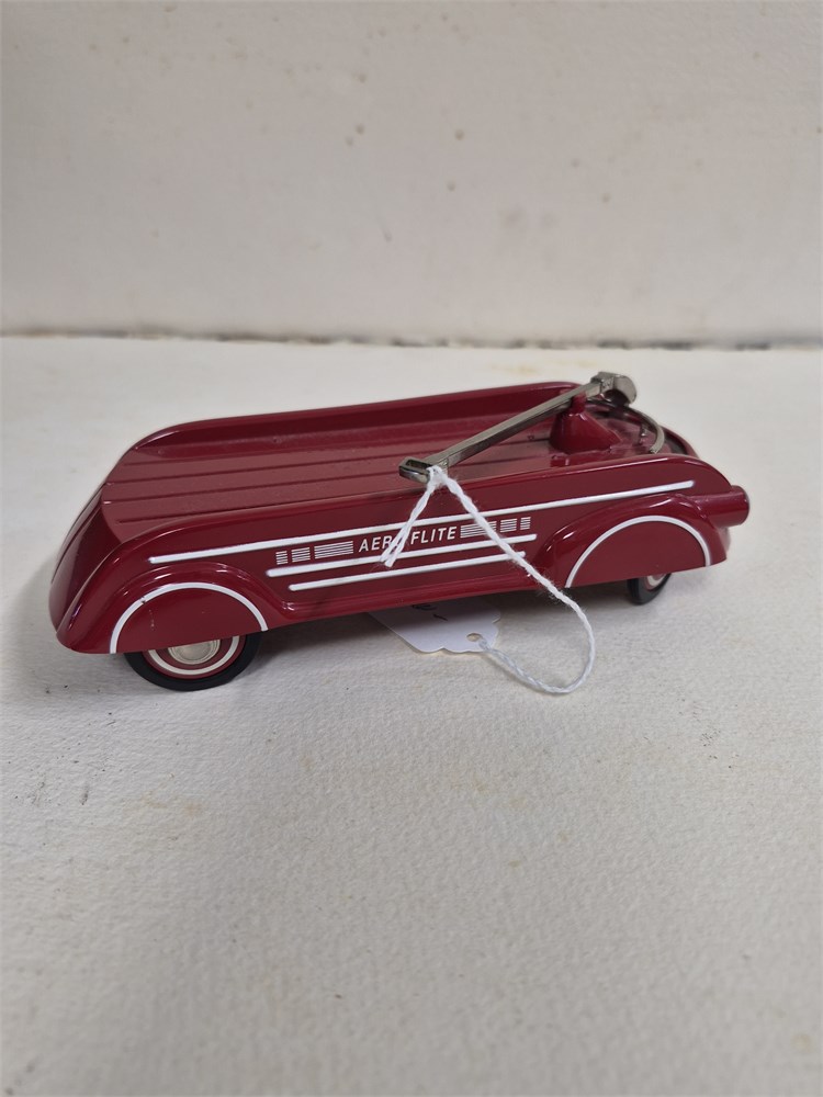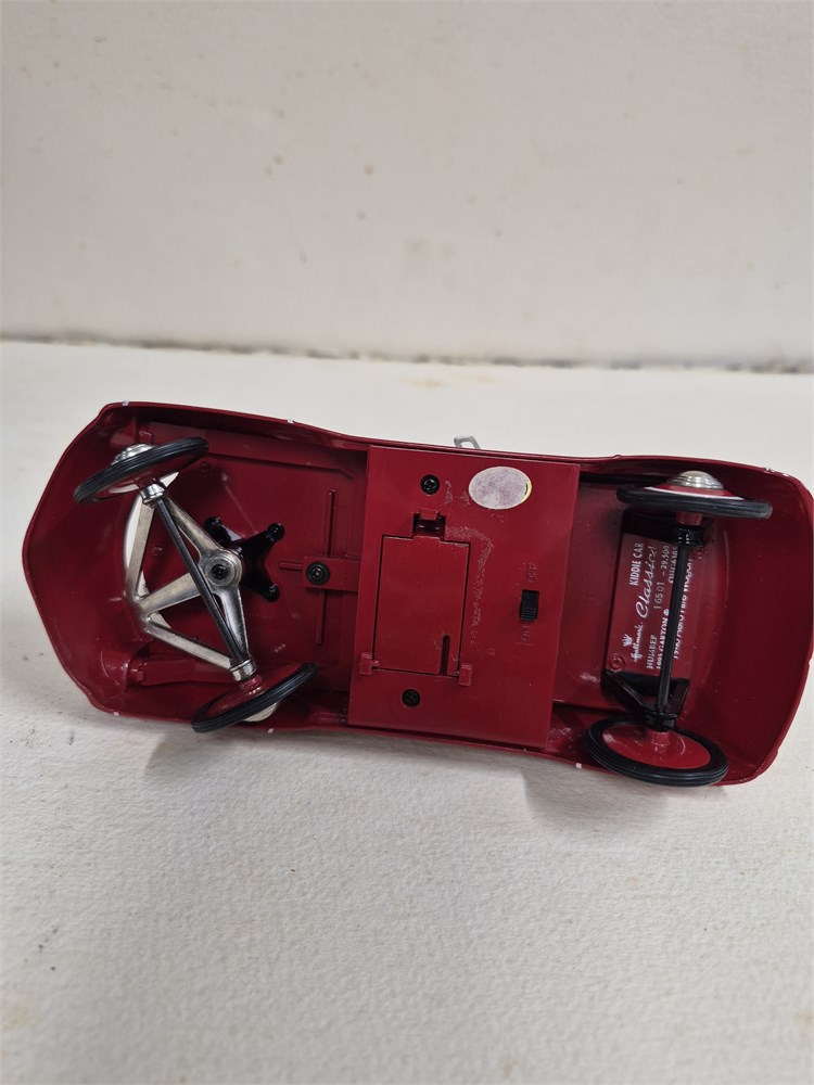Hallmark Kiddie Car Aero Flite. Battery compartment does have some corrosion, not sure.If the lights still light up, the vehicle itself, measures about seven inches long.
