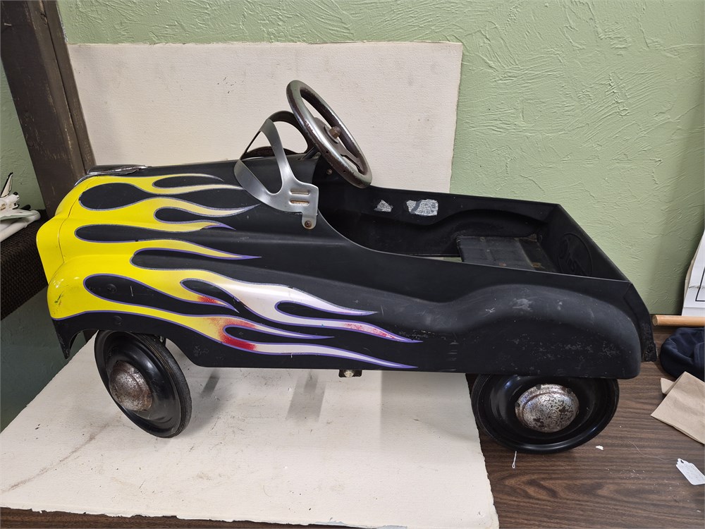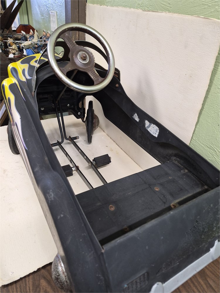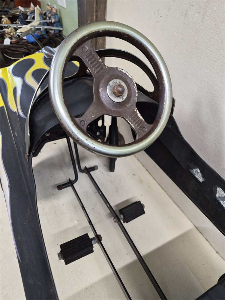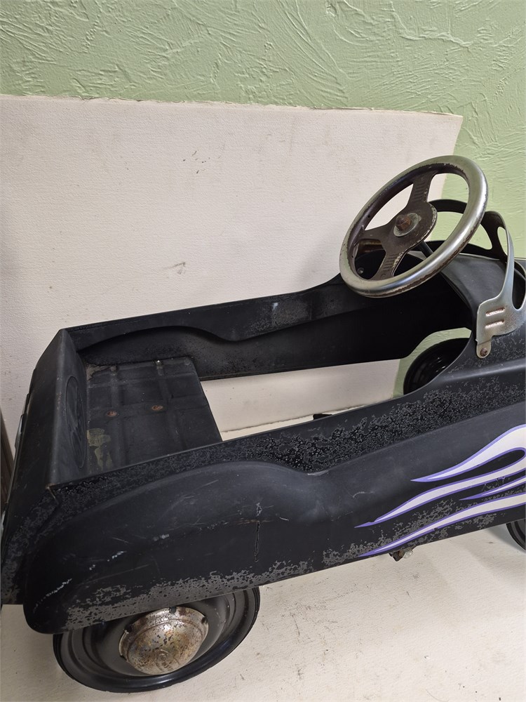 VINTAGE BLACK w/ FLAMES ‘57 CHEVY METAL PEDAL CAR “HOT ROD” By INSTEP.