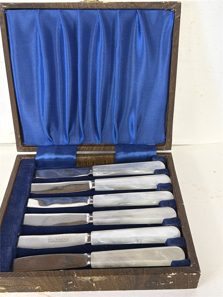 Box of 6 Sheffield, EnglandE Knives Bolster Pearl Handle