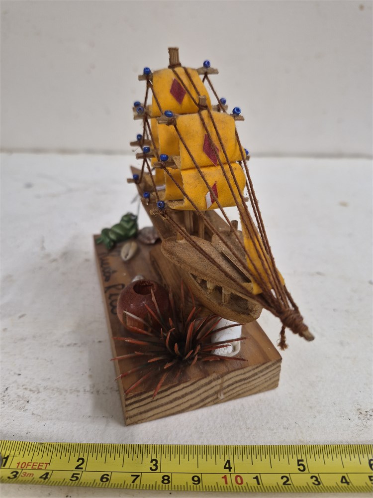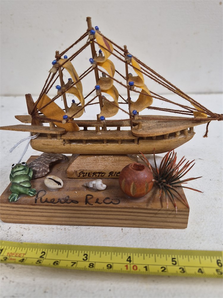 Nice.Six inch wooden boat made as souvenir was made in Puerto Rico.