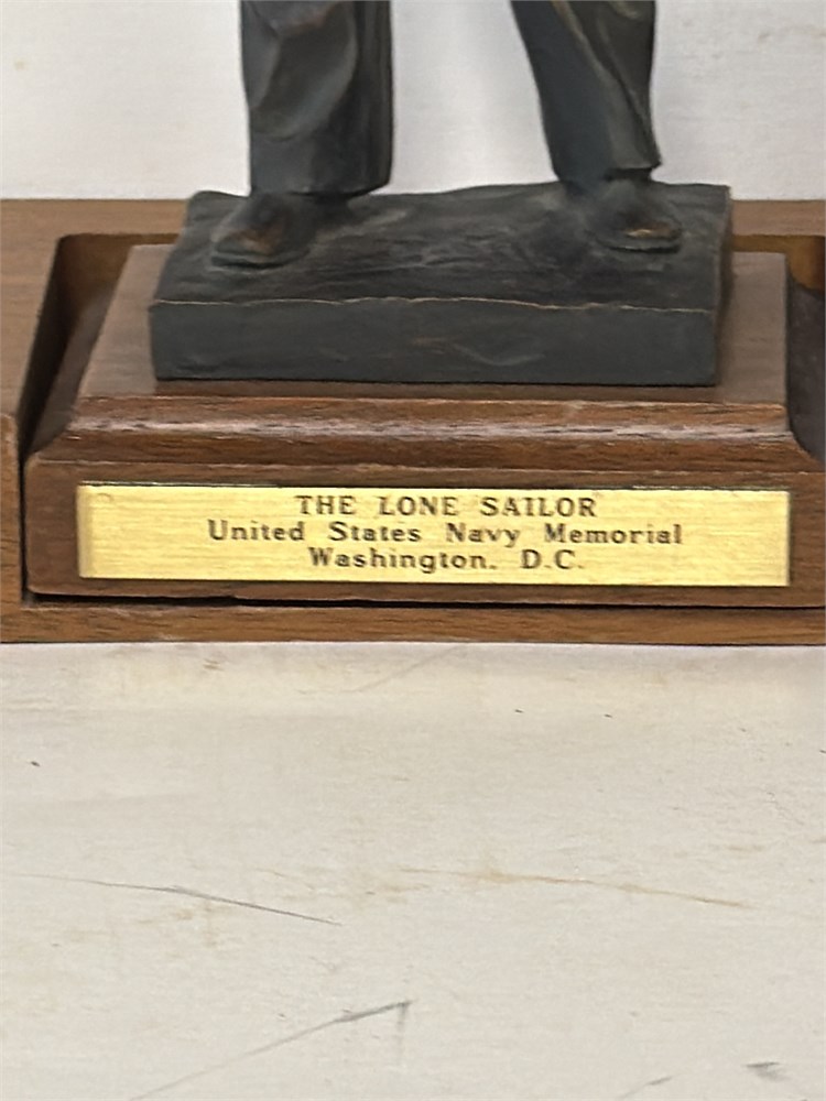 "The Lone Sailor" Bronze Resin Statue by Stanley Bleifeld US Navy Memorial sign on the back