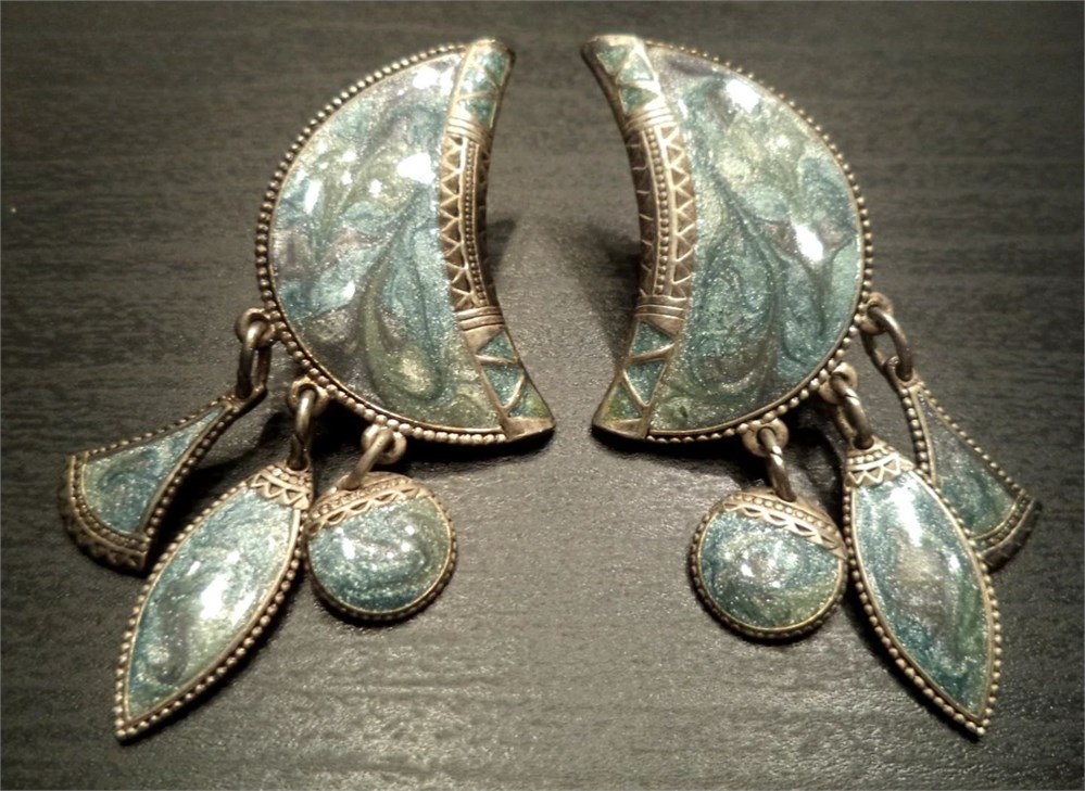 VINTAGE ESTATE SIGNED BEREBI ENAMELED 2 3/8" POST EARRINGS!