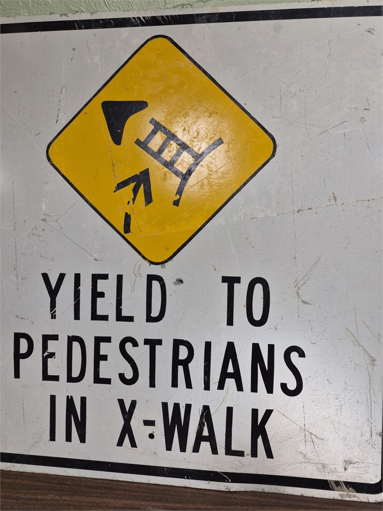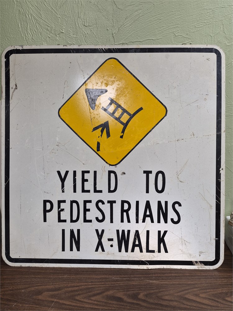 30"x30" Yield to Pedestrians sign. Actual DOT metal sign.