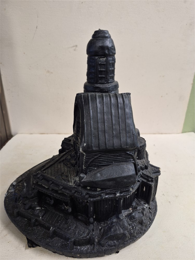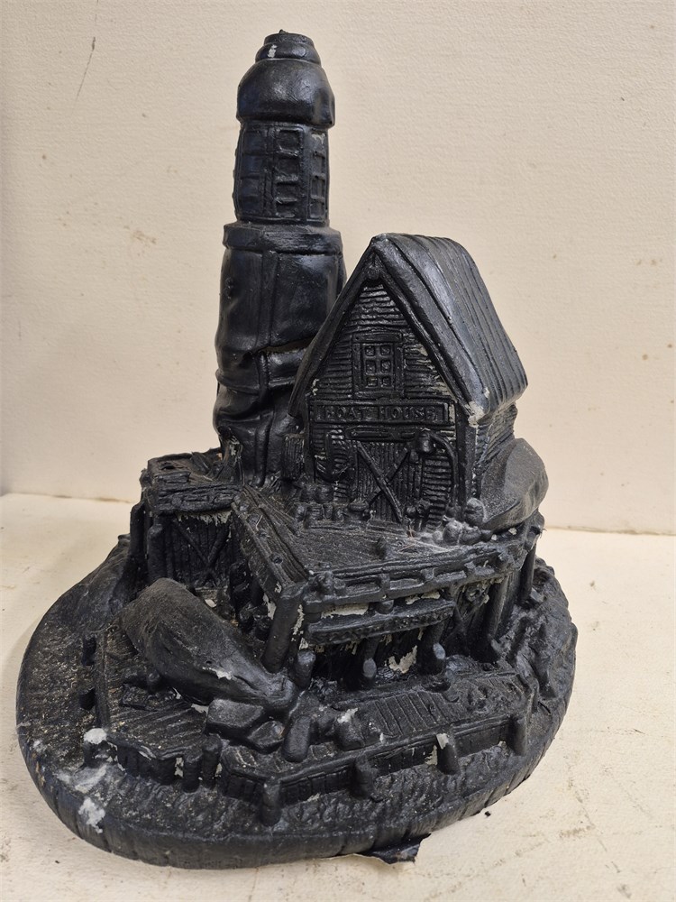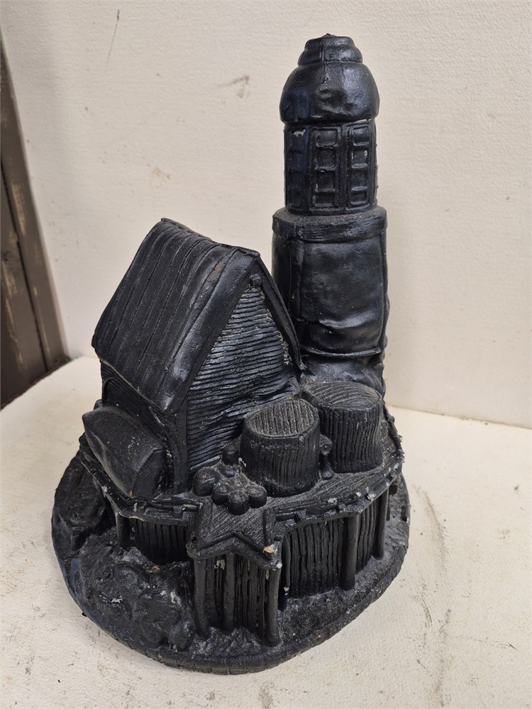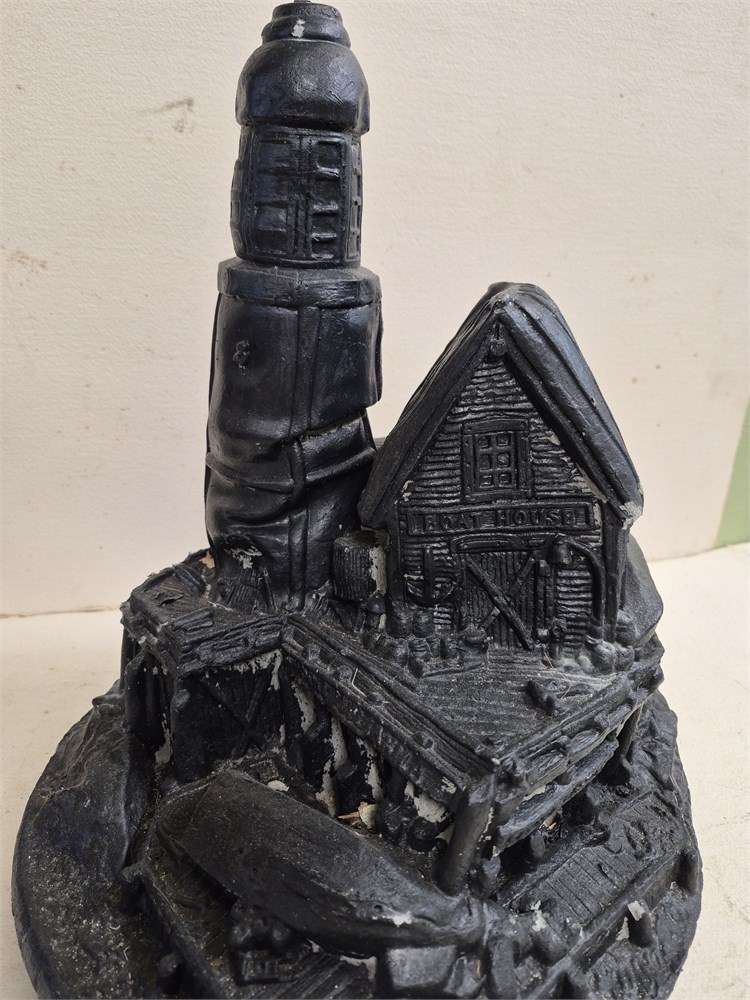 Very heavy lighthouse scene.I believe this is made of resin lighthouse stands fifteen inches tall and is twelve inches wide