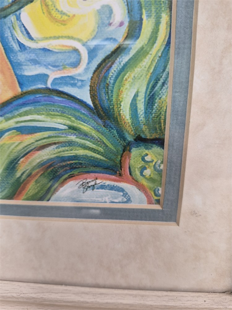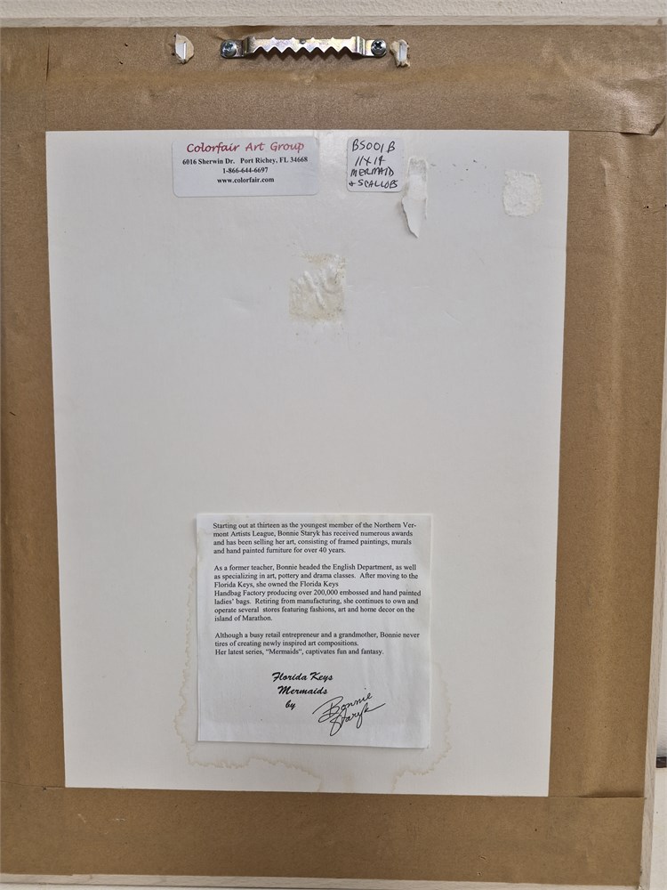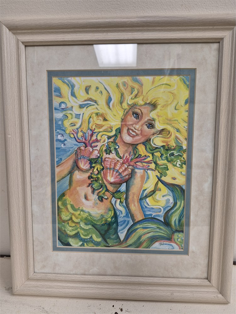 Vintage Mermaid Shell Top Art Print Signed Bonnie Staryk. Measures in frame. 13.5" x 16.5"
