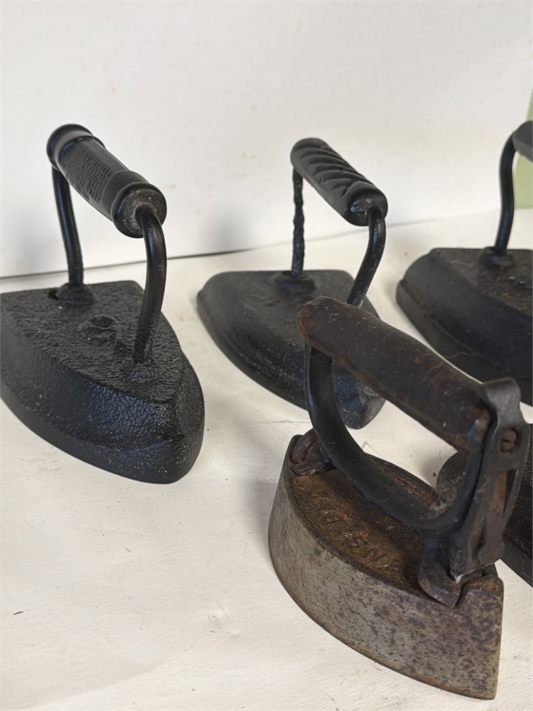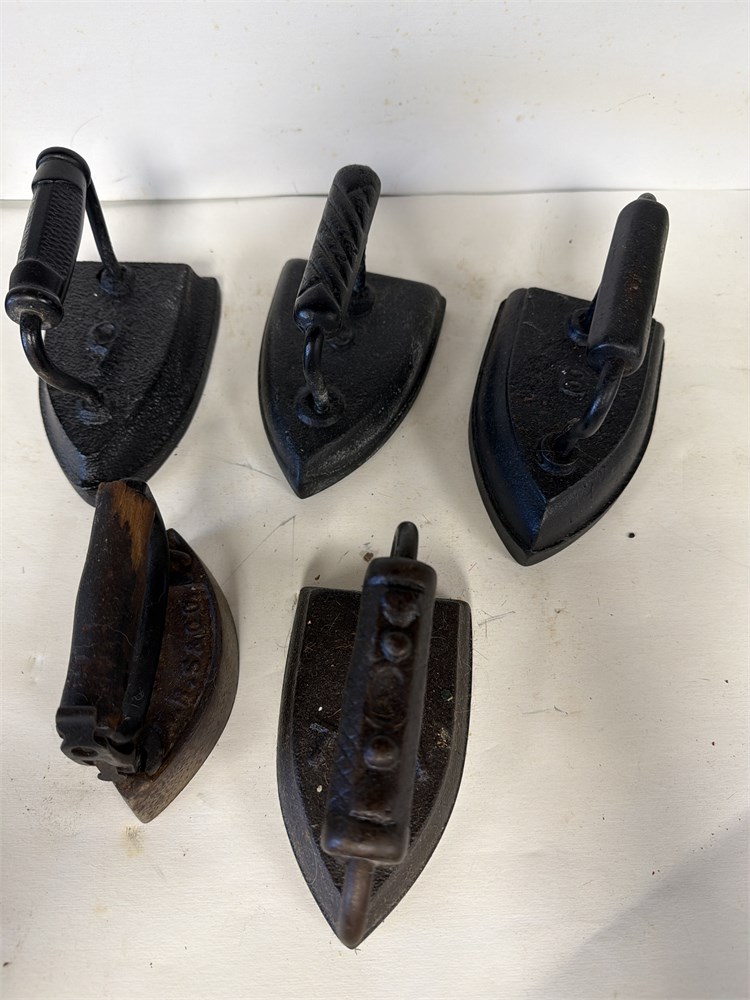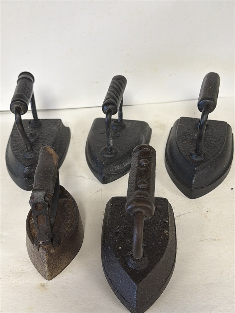 ANTIQUE SAD IRONS, OR FLAT IRONS, SET OF 5