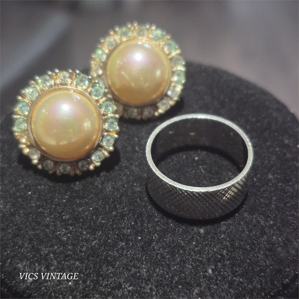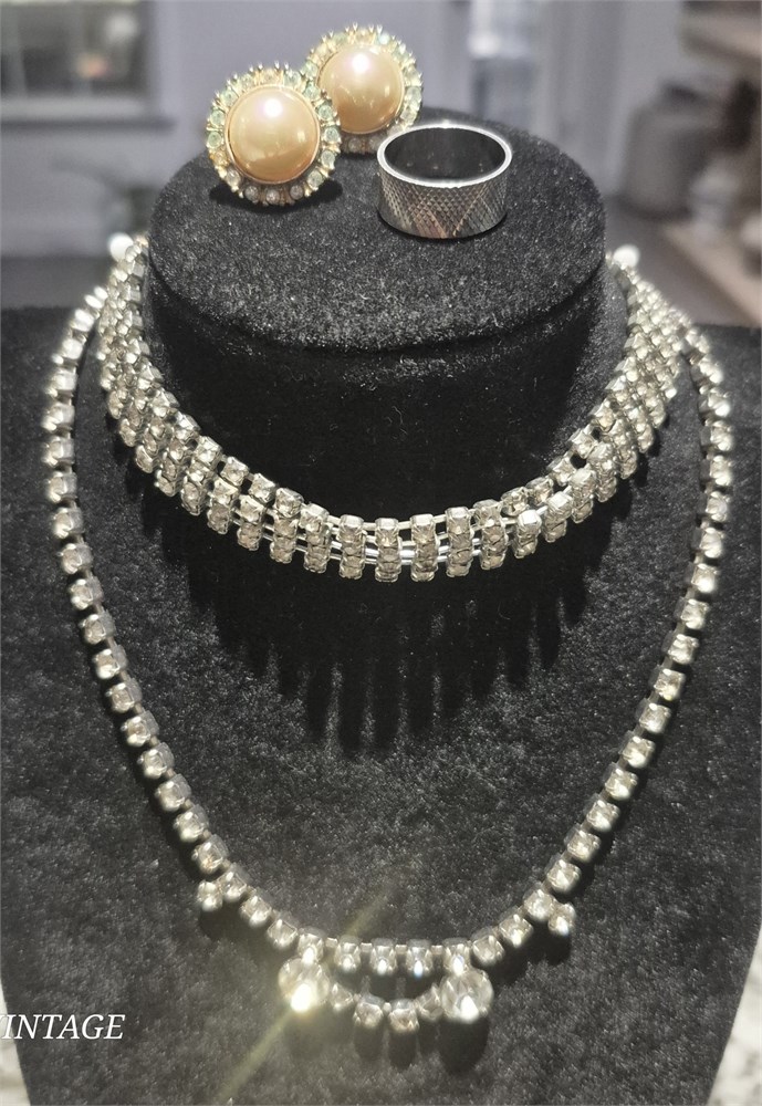 Vintage set Rhinestone : Necklace/ Bracelet / Earrings / Ring
