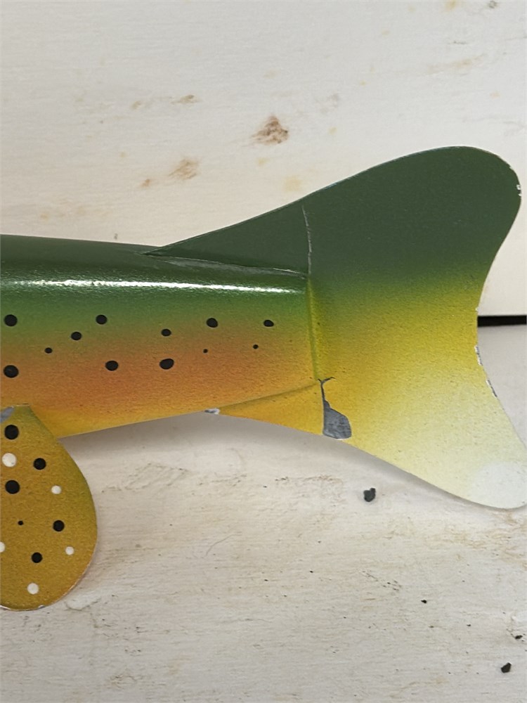 Brad. LANGE. Decor fish looks to be made out of aluminum