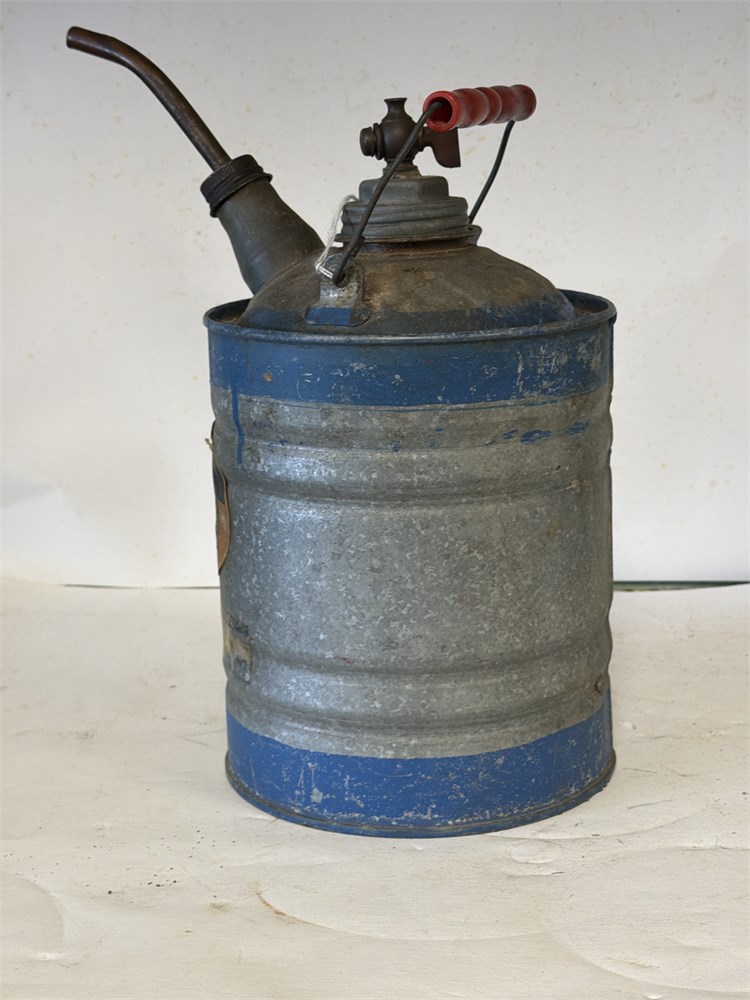 ANTIQUE 10 x 6 INCH METAL GASOLINE OIL FUEL CAN ALL ORIGINAL VERY UNIQUE