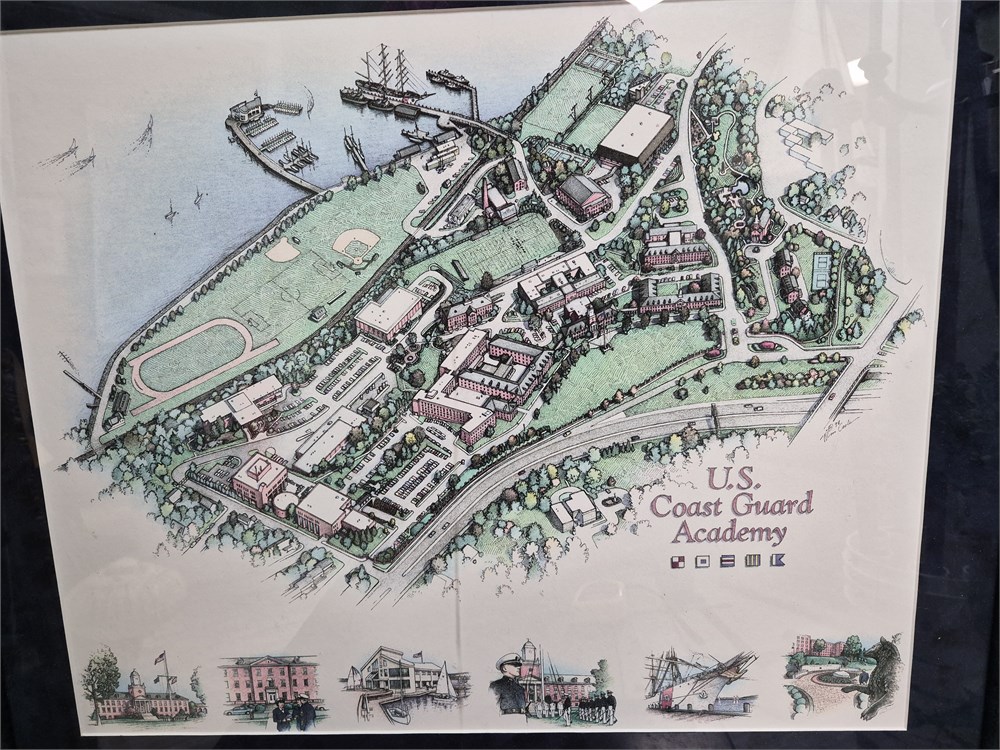 Nice framed, united states coast guard picture, including frame.It measures twenty seven inches wide.By twenty four inches tall. Kind of looks like a watercolor piece.