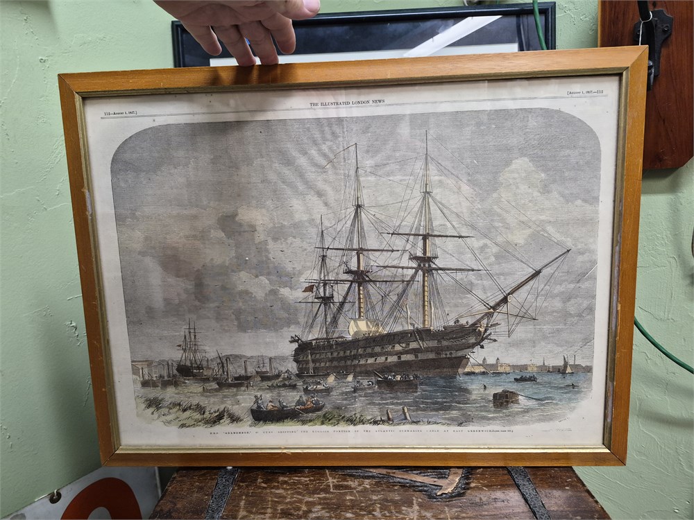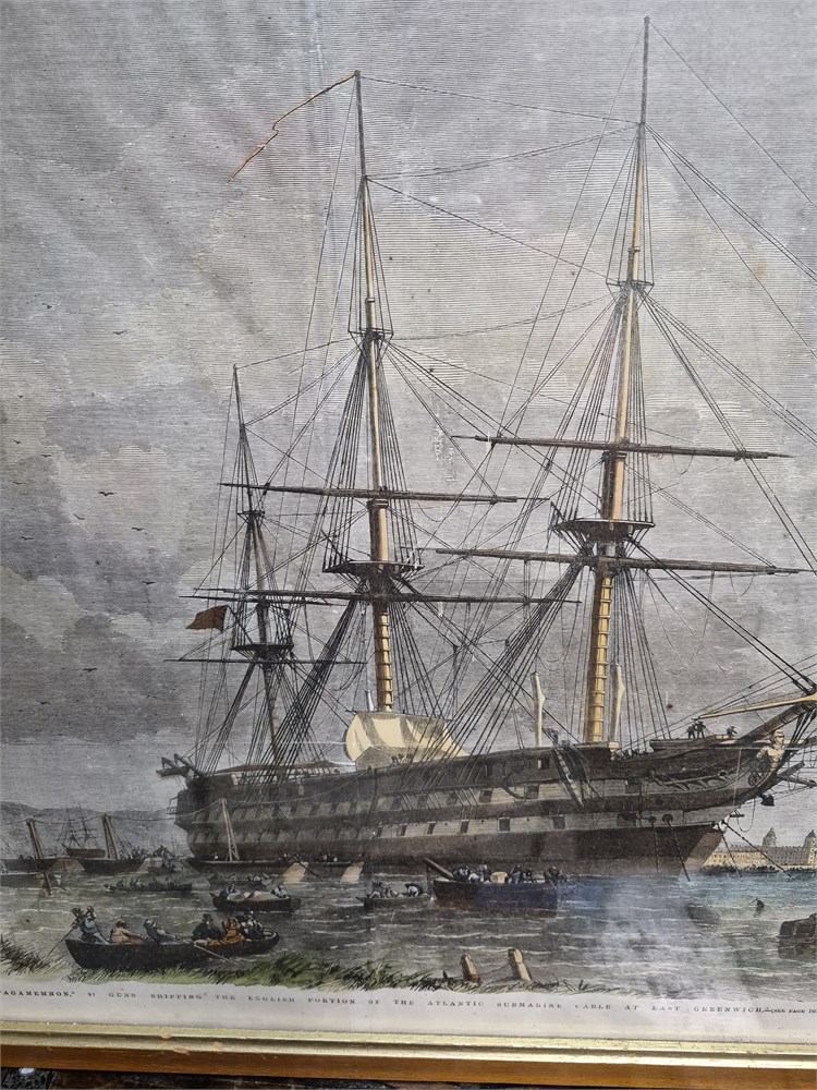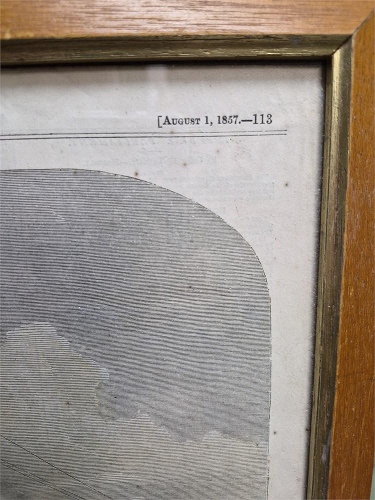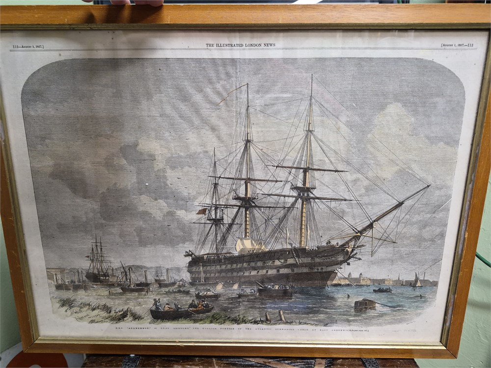 Great Framed HMS Agamenon Ship for August 1, 1857 The Illustrated London News. Picture measures 24"x17.5".