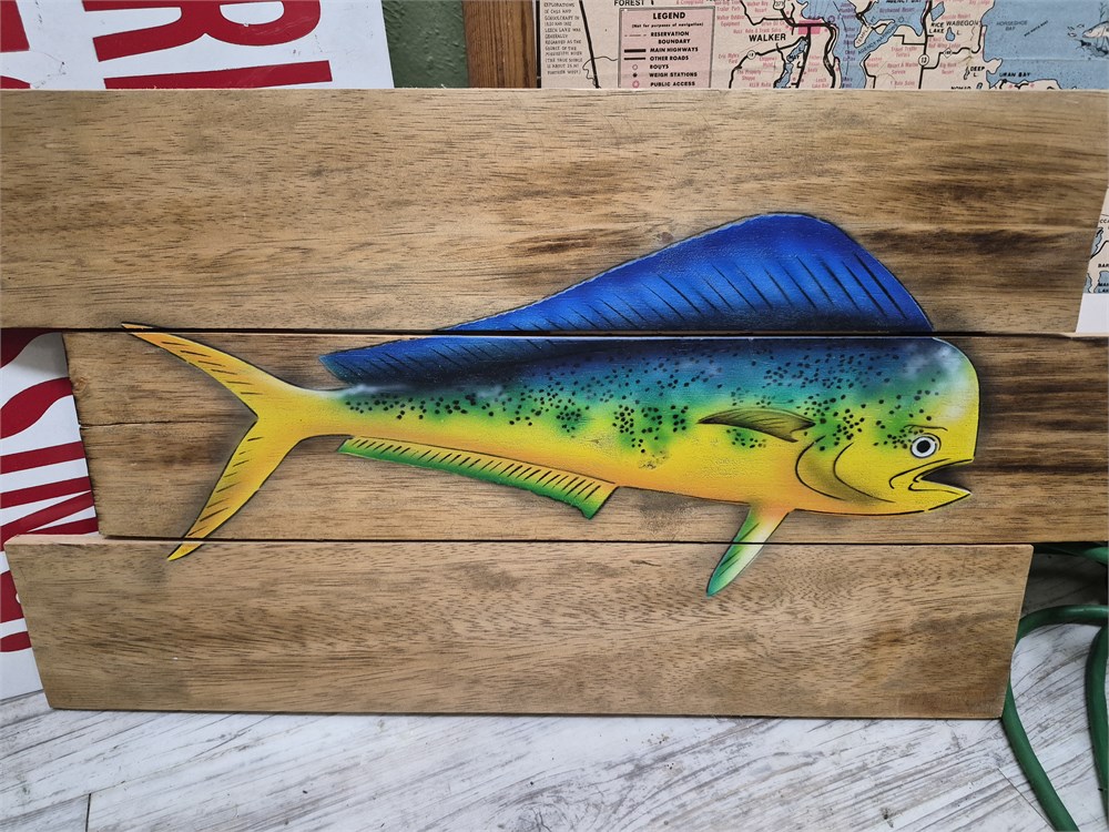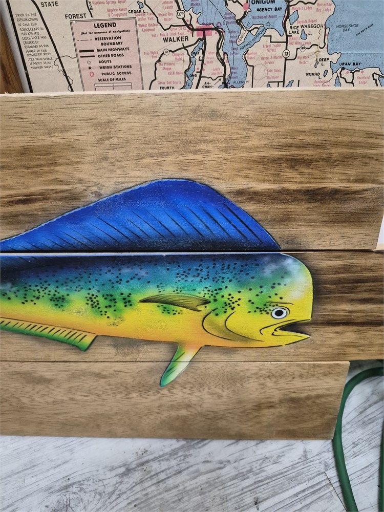 Mahi mahi picture painted on wood. 21.5x12.5.