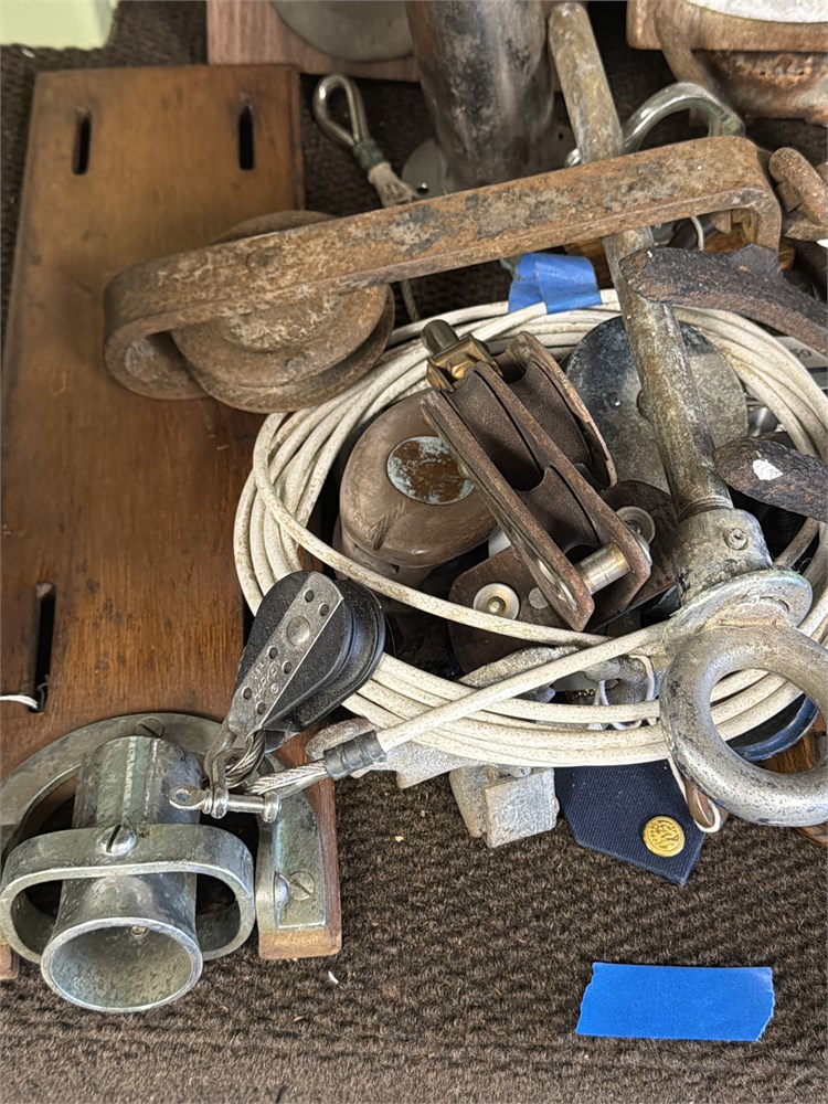 A lot of vintage boat supplies, controllers, Pulley ride holders Cable nice selection