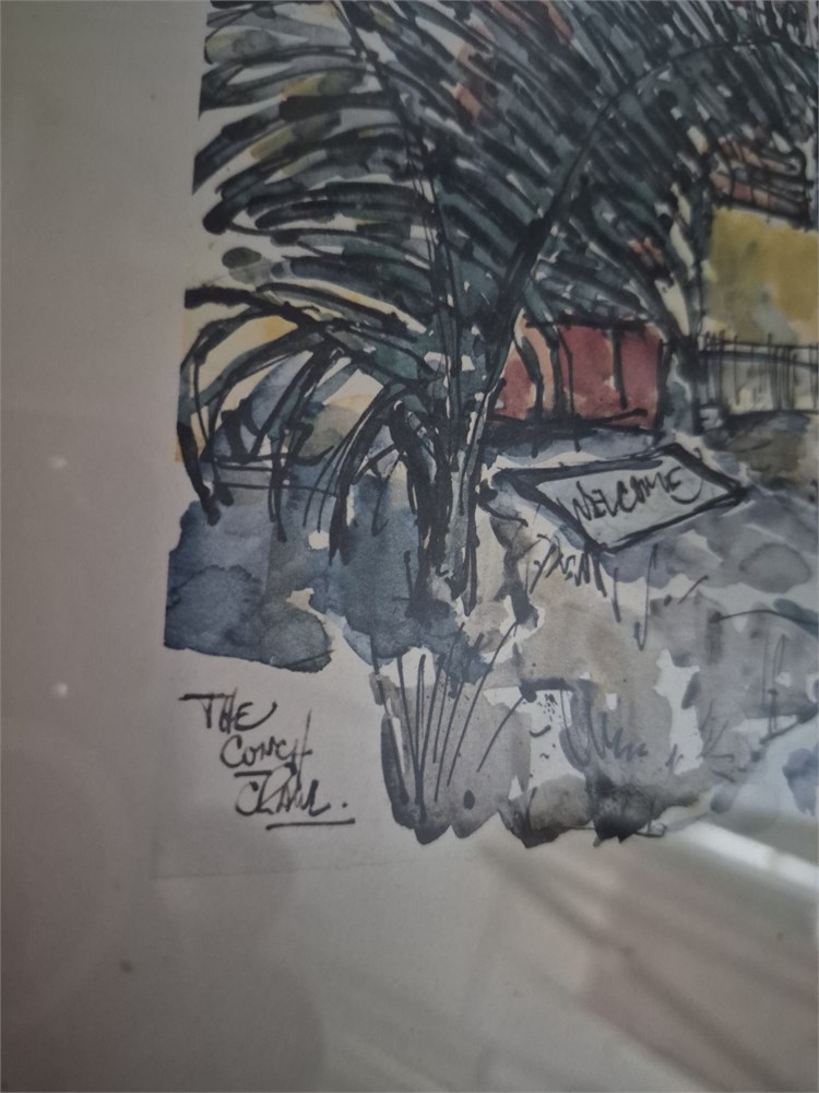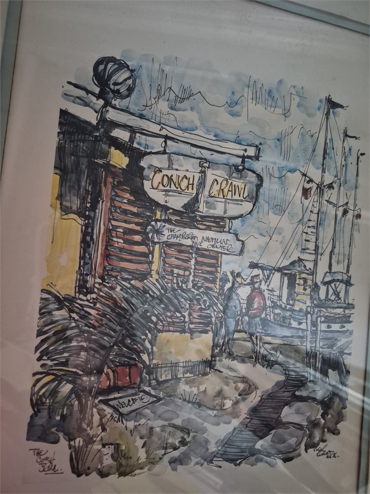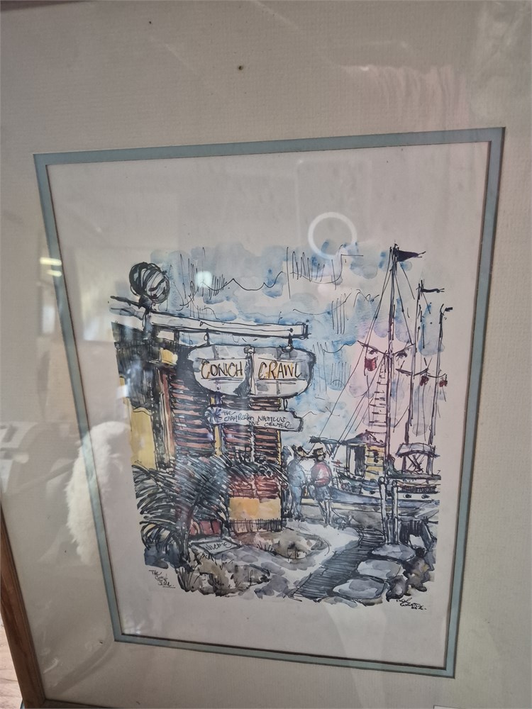 Conch Inn Cafe Watercolor. Piece is signed by artist.