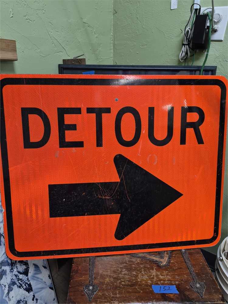 DOT orange reflective detour sign. Measures 30x24