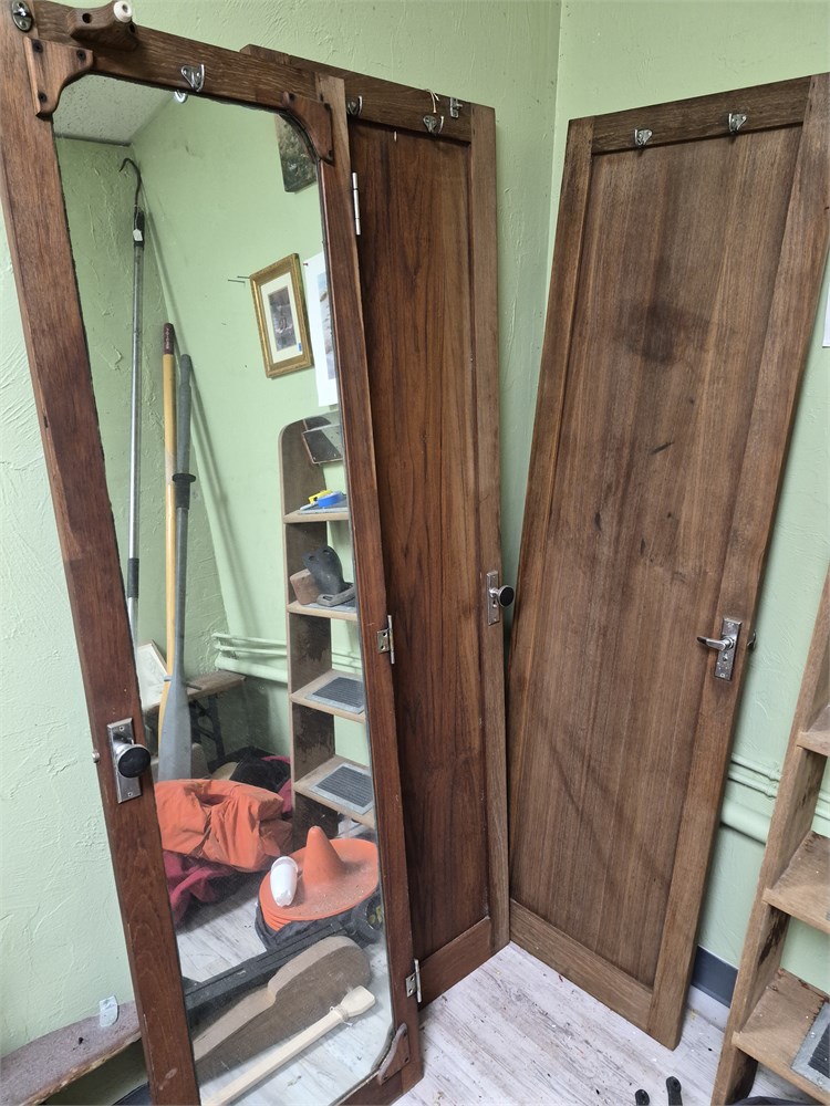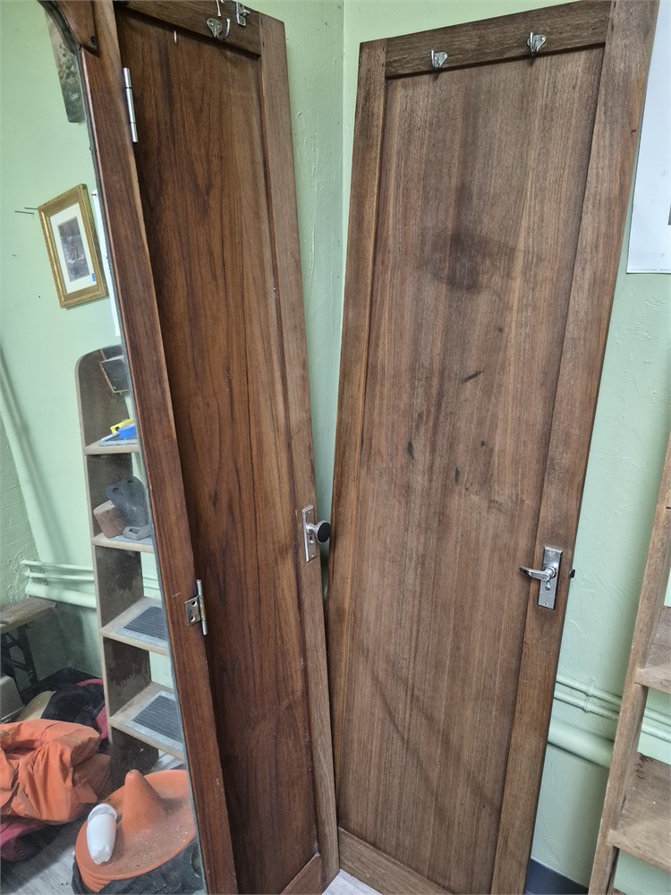 Set a three teak cabin doors for boat. Doors all measure just over 69" tall and 19.5" wide. One door has mirror.