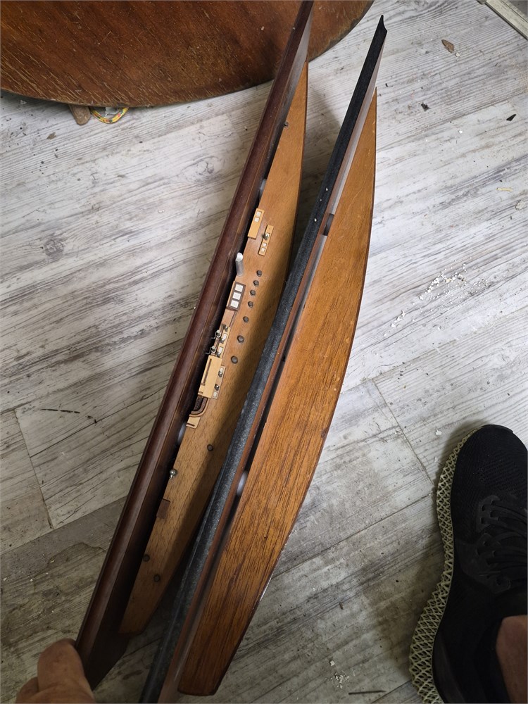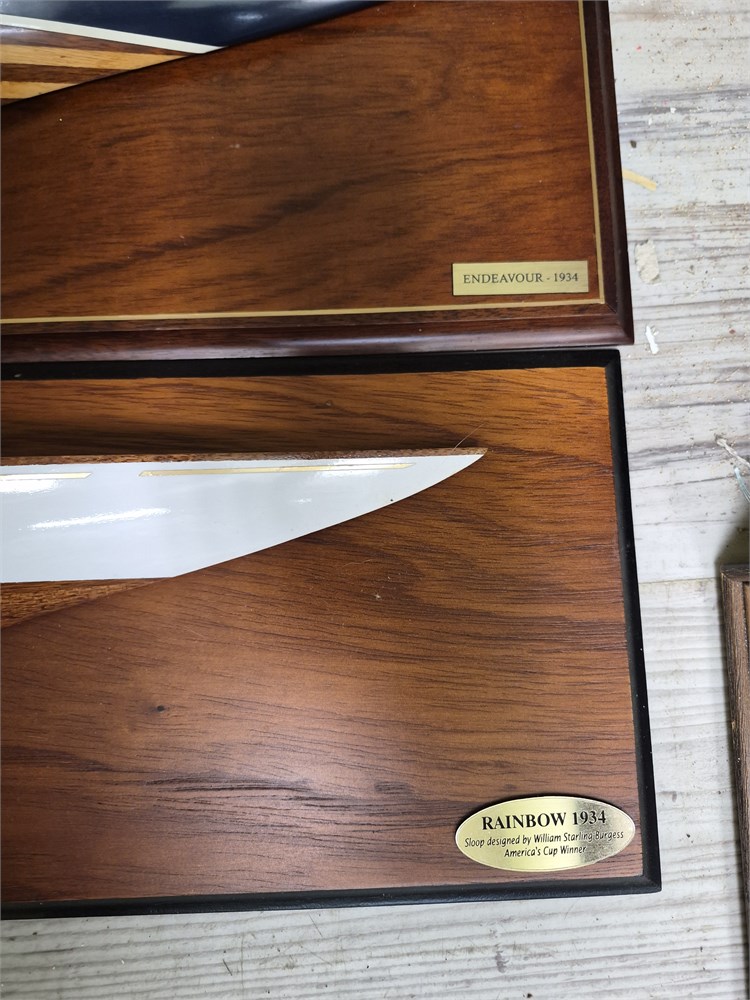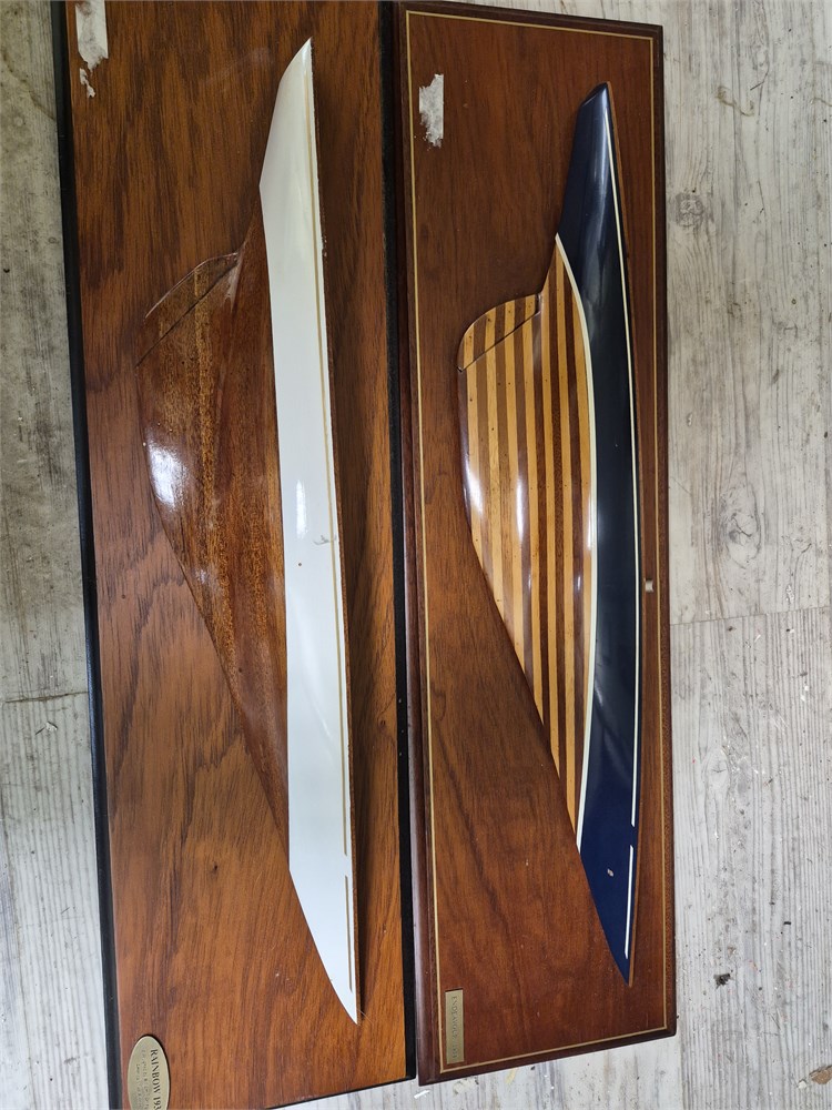 Two nice replica wood hall ships. One is of the Endeavor 1934 and the Otner is Rainbow 1934. On boards ech measures 29" long.