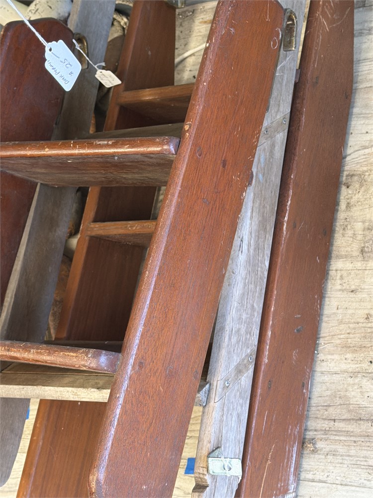 Three wood vintage bolt ladders is 26 inches 34 inches 36.  Inches