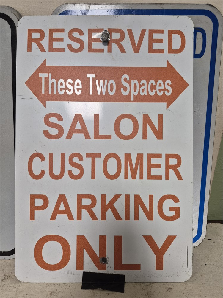 18x12 reserve these two spaces, salon.Customer parking only metal sign.