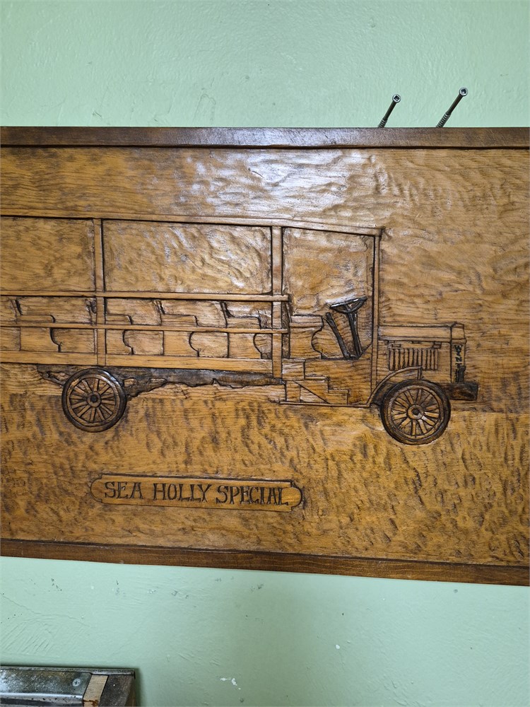Vintage Carving Russ Beall SEA HOLLY SPECIAL KDH Galleries Kill Devil Hills NC. Measures 27x14.75"