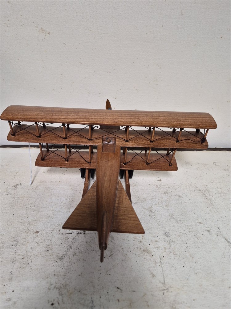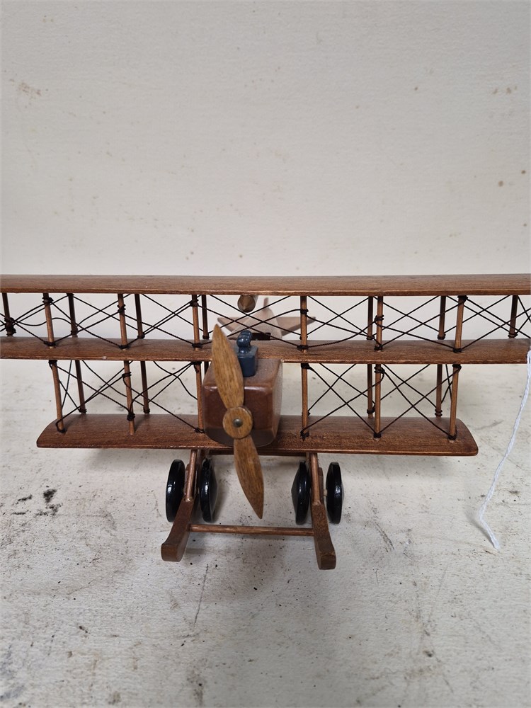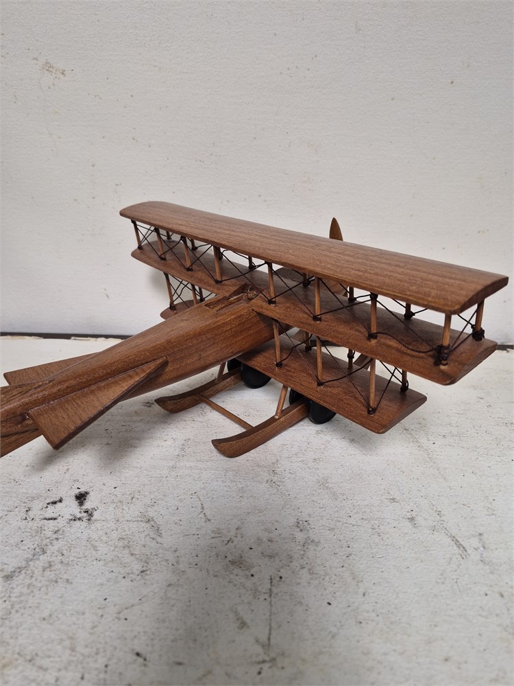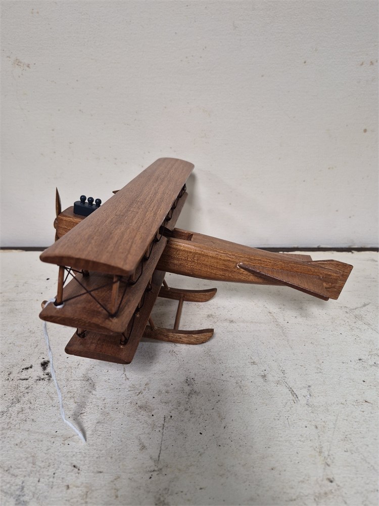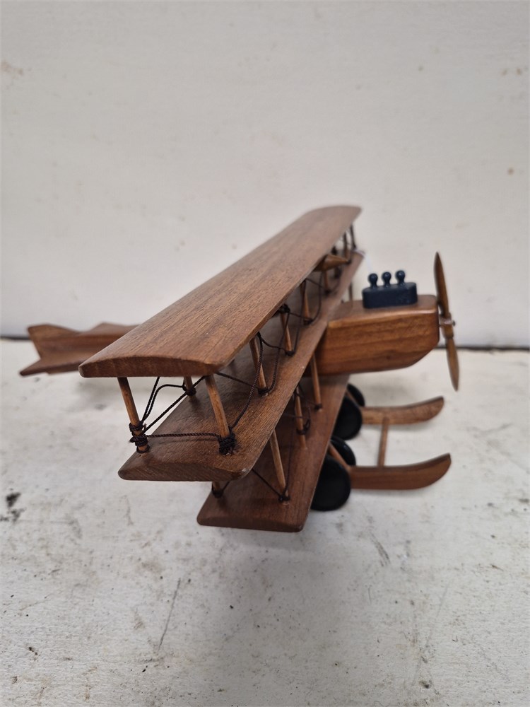 Vintage WW1 Style Folk Art Wooden Wright Bros Model Airplane Water Pontoon