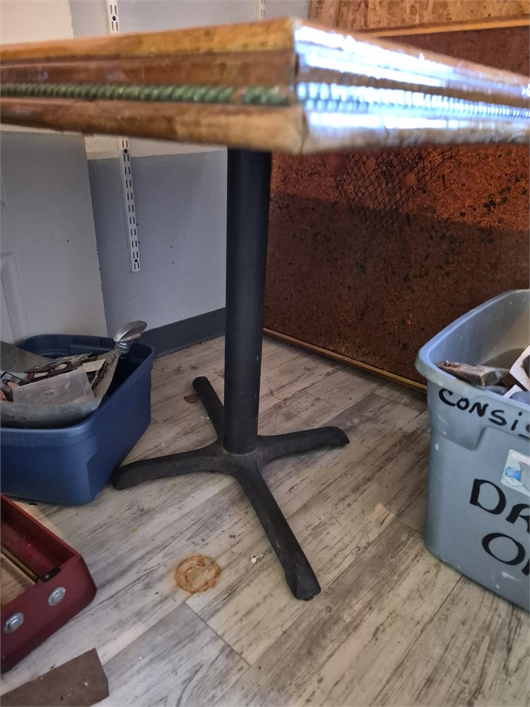 This is a table made at the old Shell Factory. Table measures 36x36 and is 30 off ground.