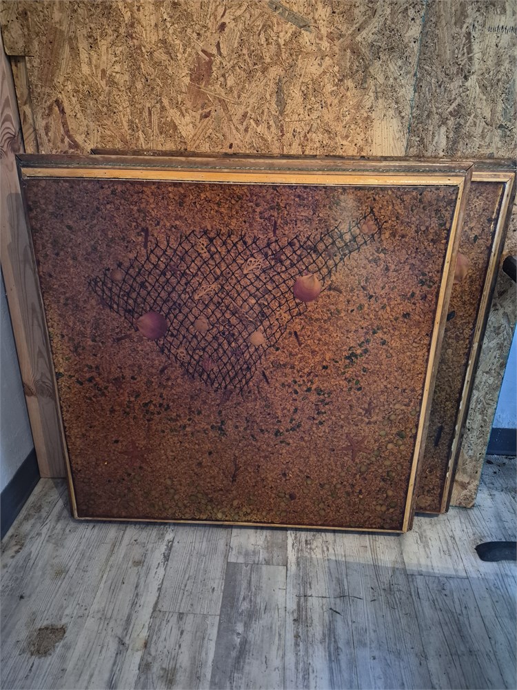 Two 36x36 table tops. These both came from the Shell Factory. There are no bases included.