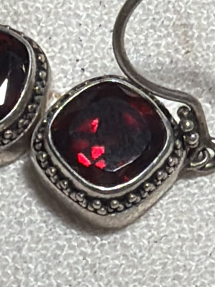 Vintage Ruby red sterling silver earrings 3.94 g very unique pair Lori bunn Stamp maker
