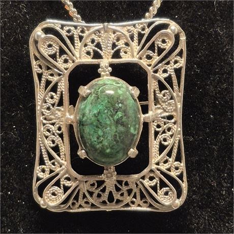 Sterling Square Filligree Pendant &  Brooch ~ use both ways