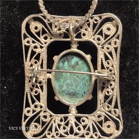 Sterling Square Filligree Pendant & Brooch ~ use both ways [VC]