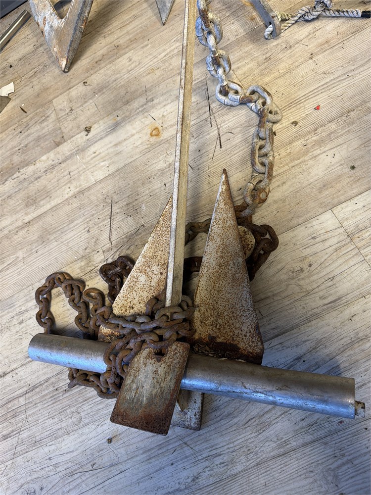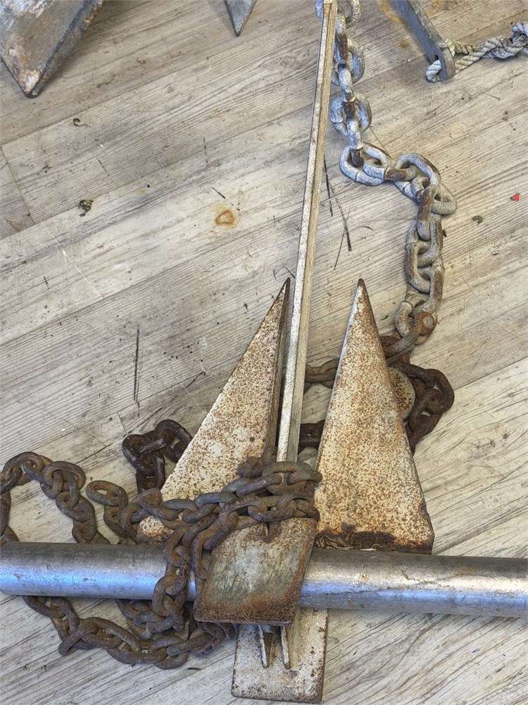 Vintage boat anchor 27 x 20” with chain stainless steel steel