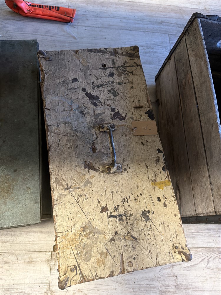 Three vintage wood and steel boxes