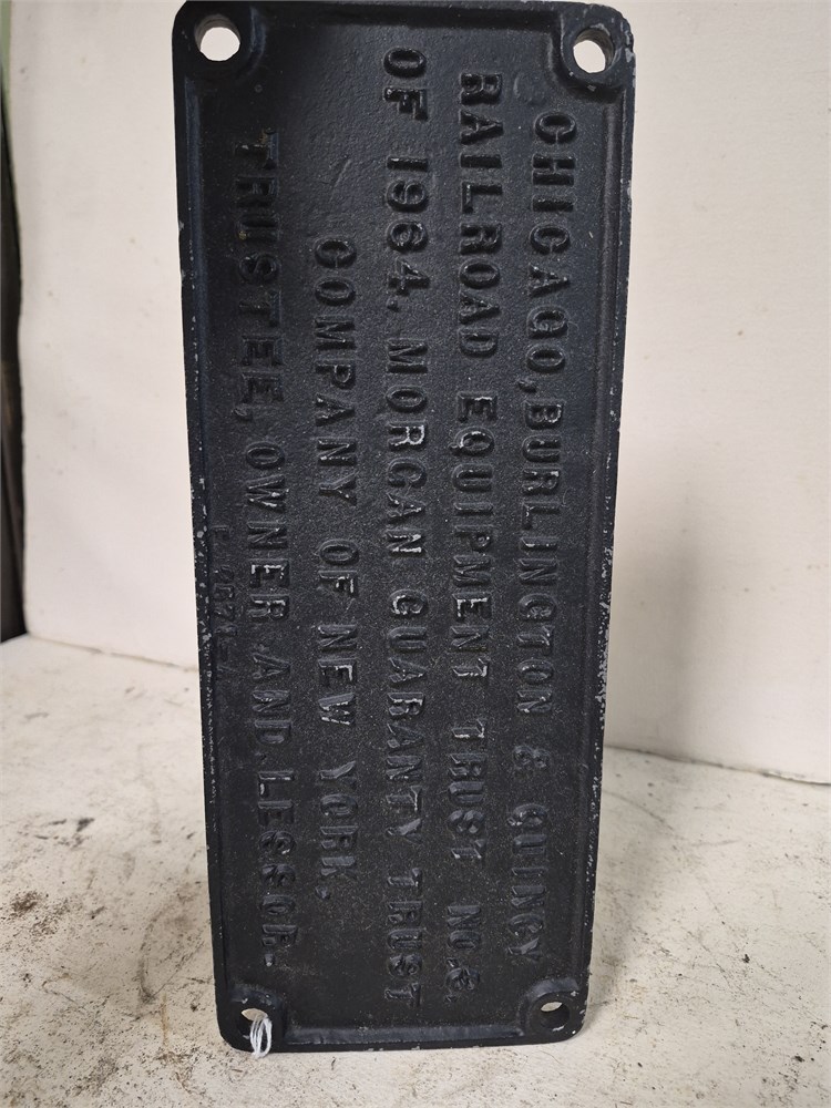 CHICAGO, BURLINGTON & QUINCY Railroad Equipment Trust No 3 Identification Plate