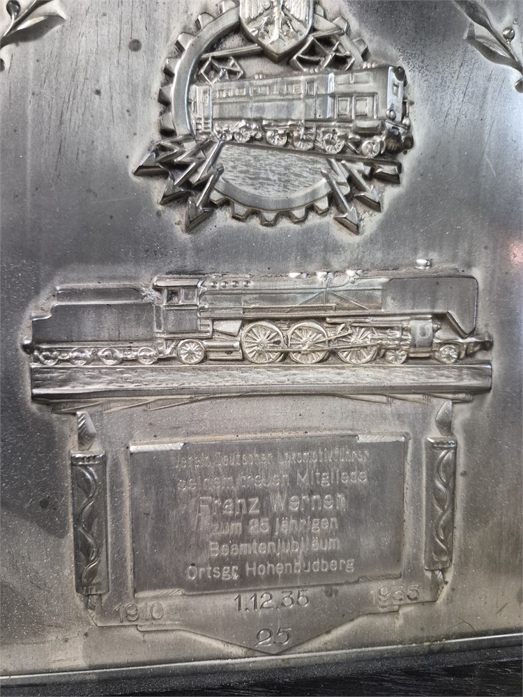 OUTSTANDING RARE Original WWII German REICHSBAHN (RAILWAY) PRESENTATION PLAQUE