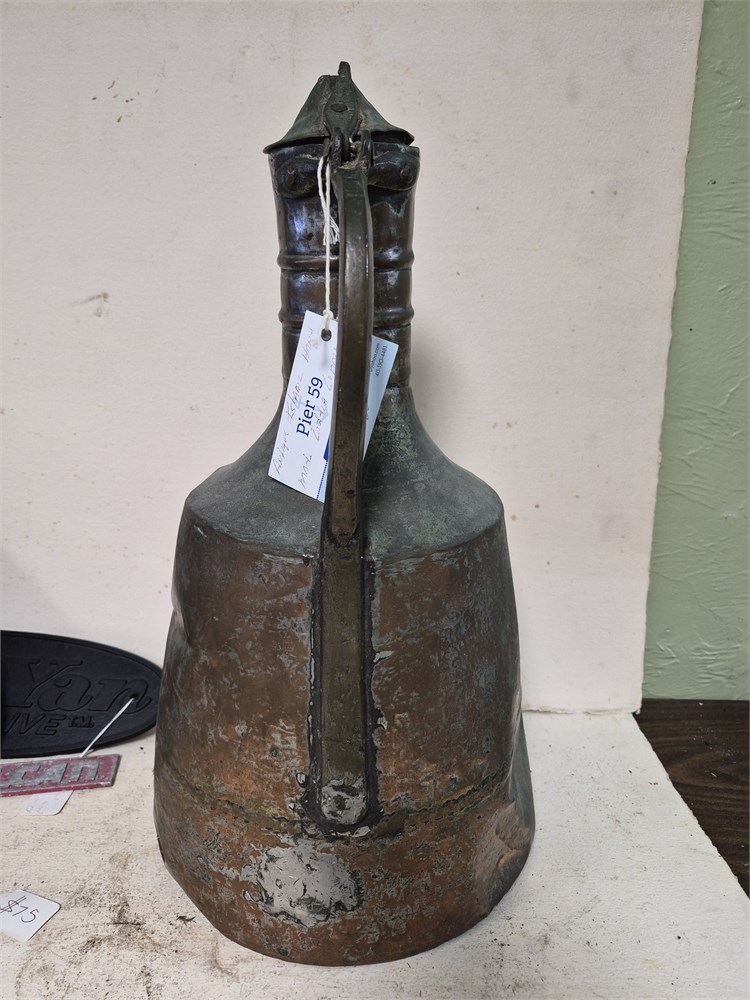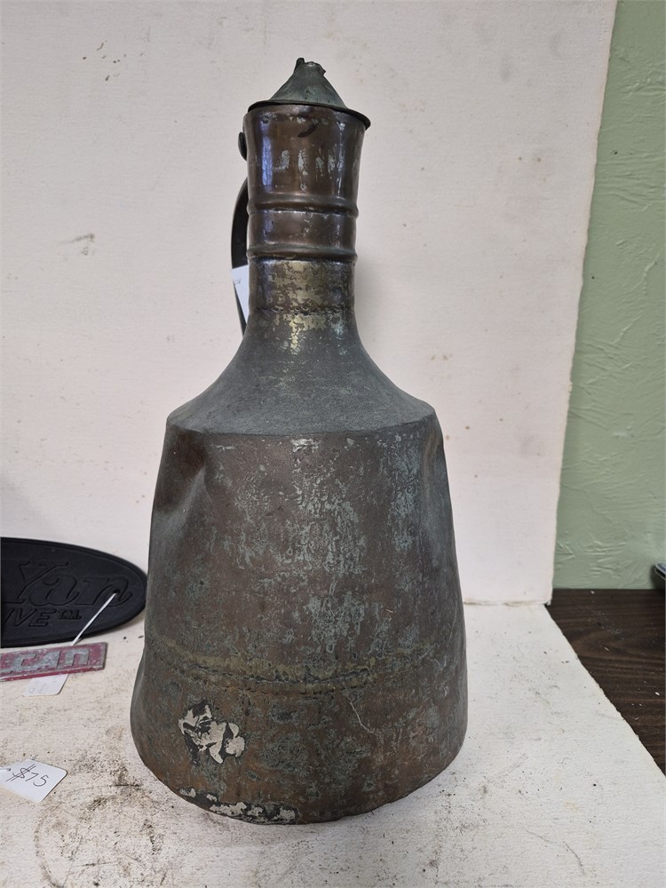 Antique Primitive Arts & Crafts Hammered Hand Raised Copper Pitcher 17''H